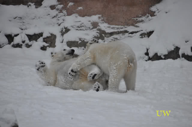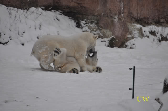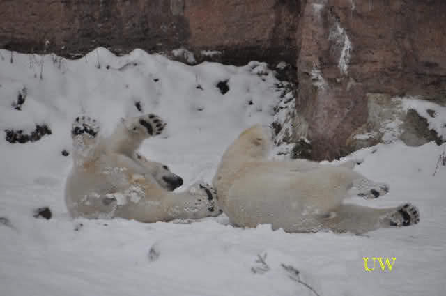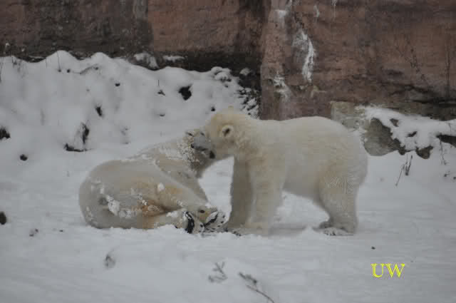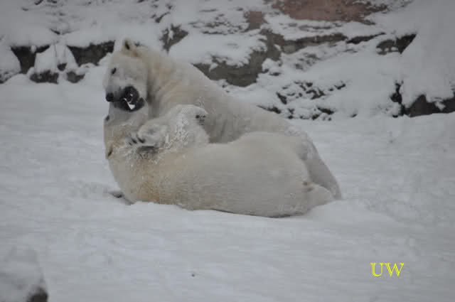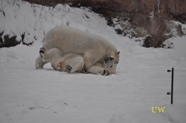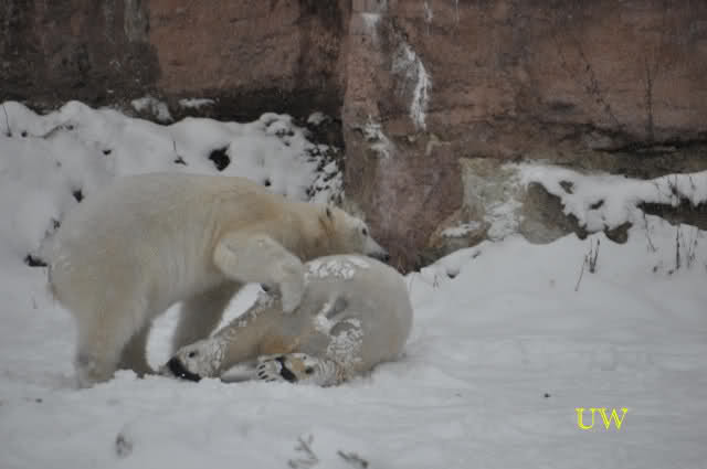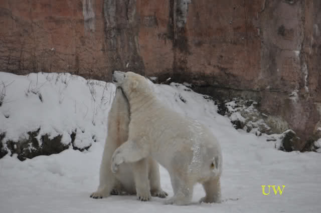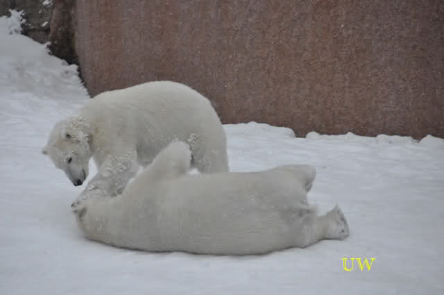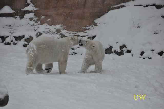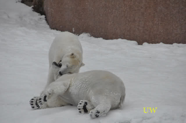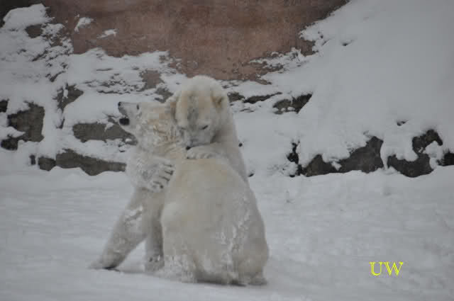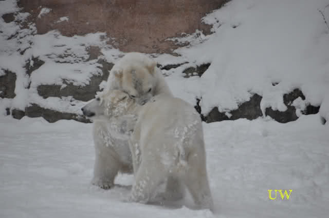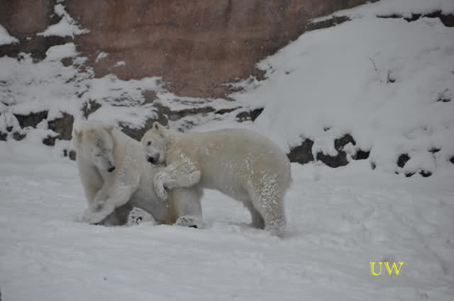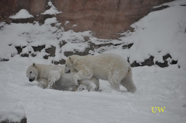 Es schneite zeitweilig ziemlich stark, die beiden fühlten sich im Schnee ziemlich wohl und spielten miteinander.