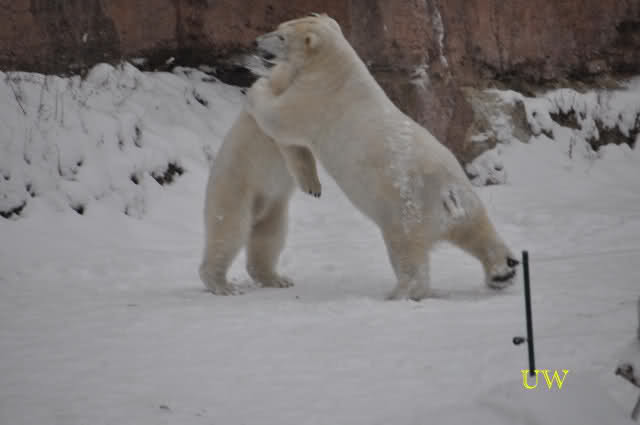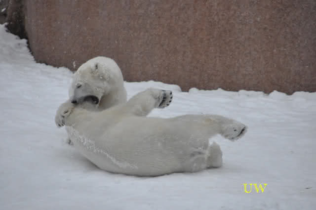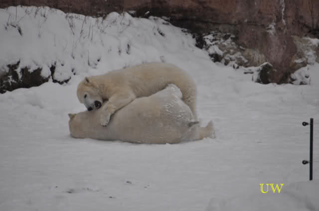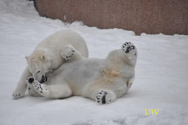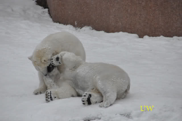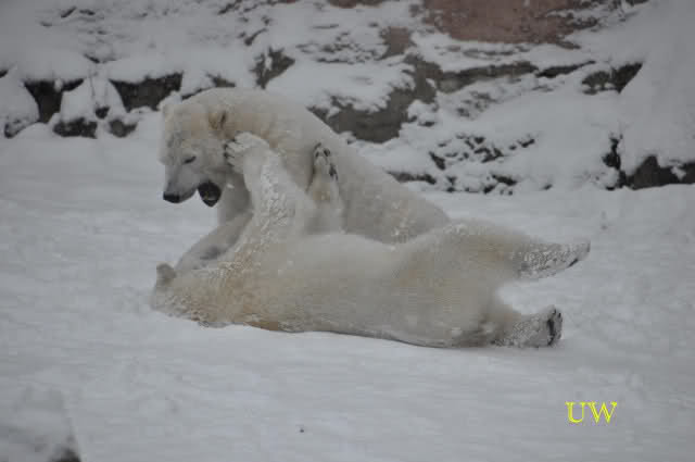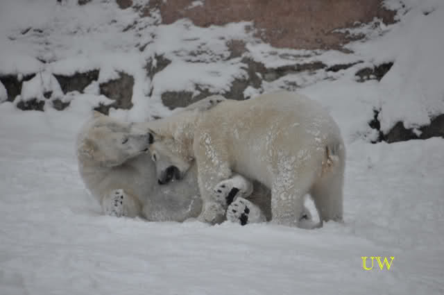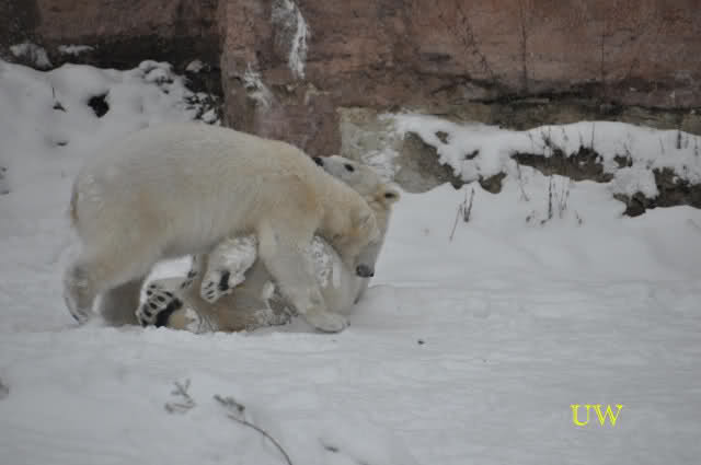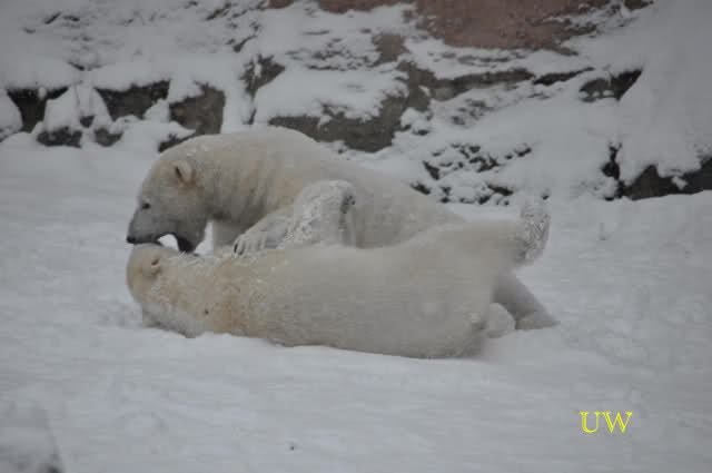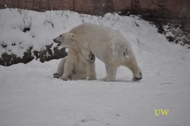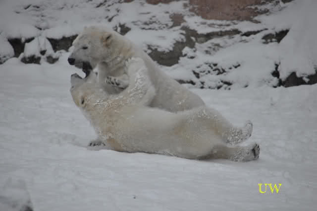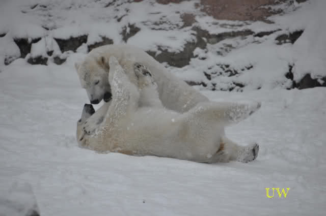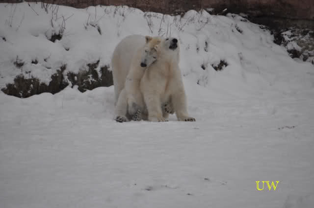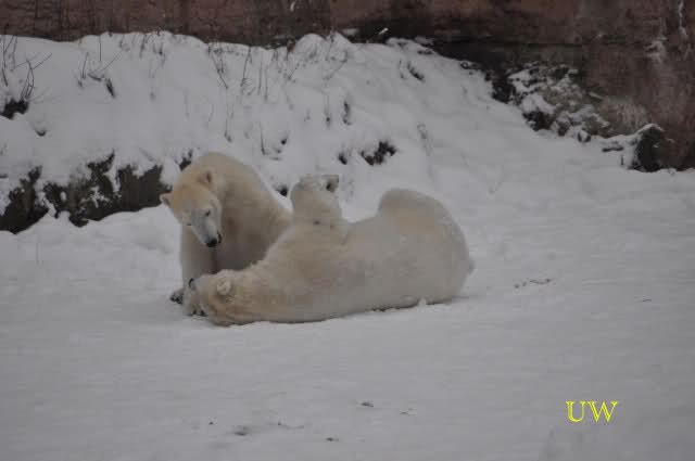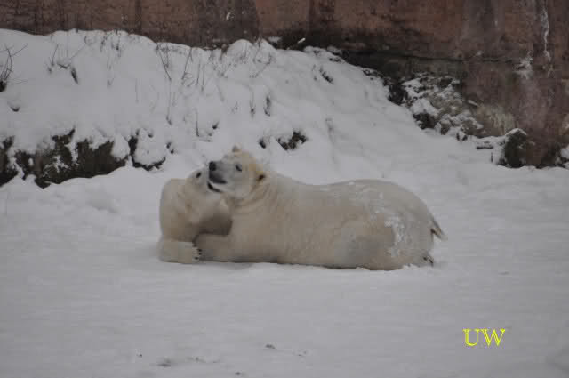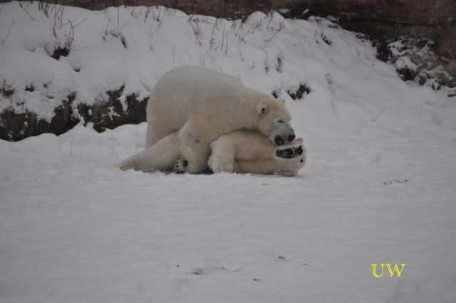 Es schneite zeitweilig ziemlich stark, die beiden fühlten sich im Schnee ziemlich wohl und spielten miteinander.