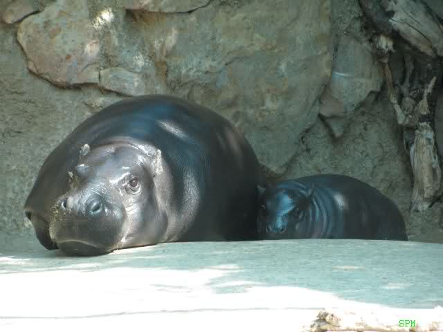 Mama Zwergflusspferd mit ihrem Söhnchen