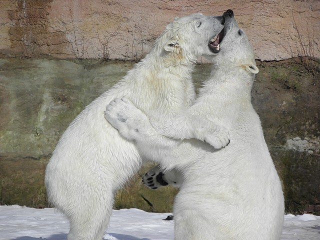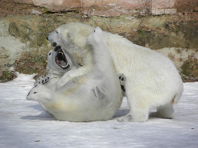 Ich war letzten Samstag im Tiergarten. Besonders Raspi war schier unermüdlich, von gelegentlichen kurzen Verschnaufpausen abgesehen, und auch Flocke ließ sich immer wieder zum Spielen animieren. Raspi hat sogar auf den Mittagsschlaf verzichtet, den er bei meinen letzten Besuchen immer irgendwann zwischen 12 und 1 Uhr gehalten hat. Als ich gegangen bin, war immer noch schwer Aktion angesagt