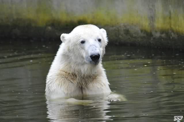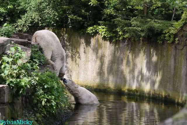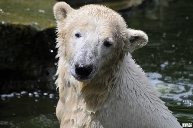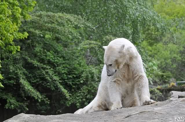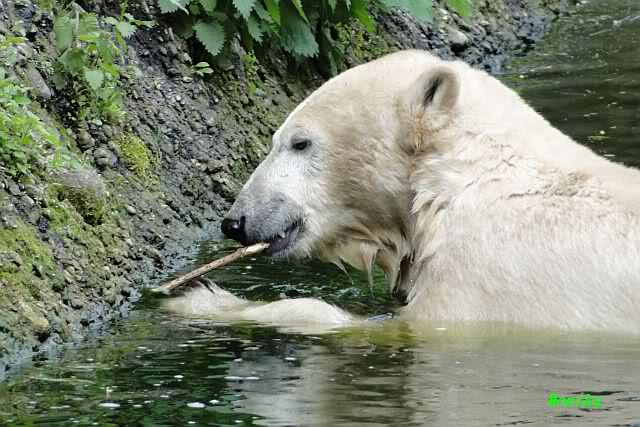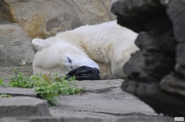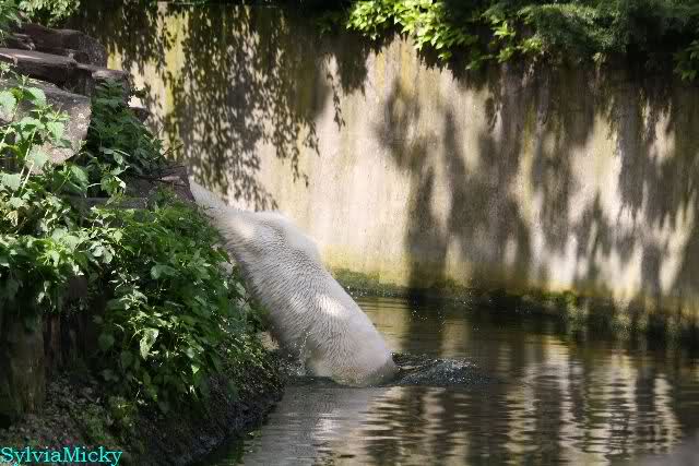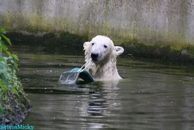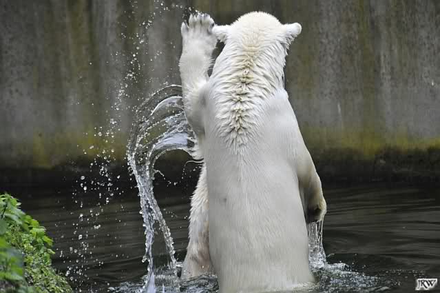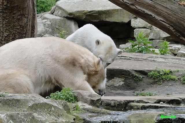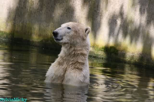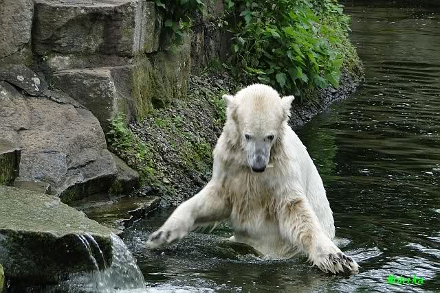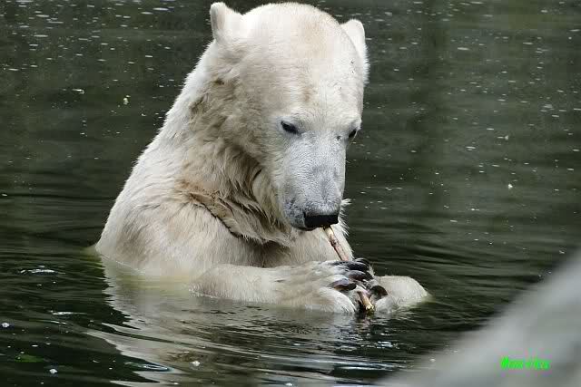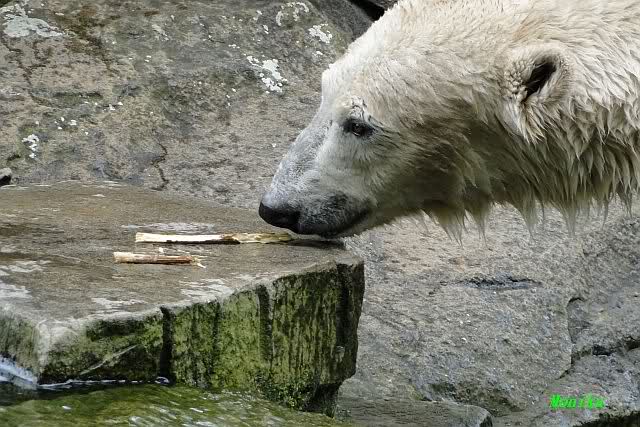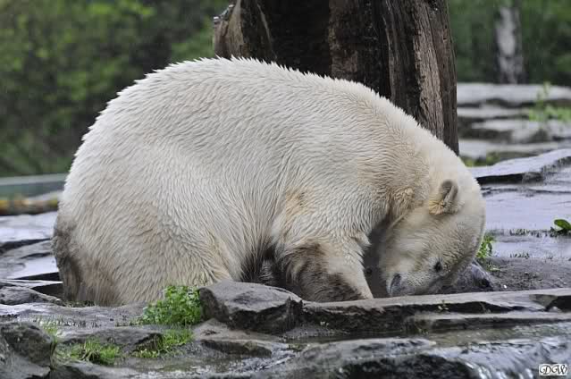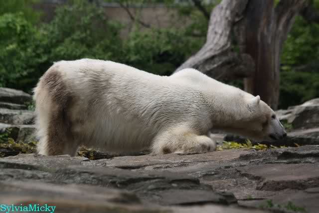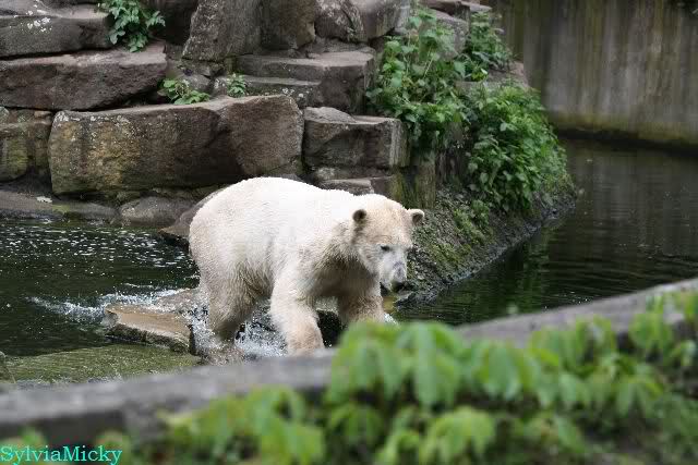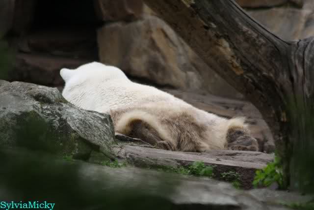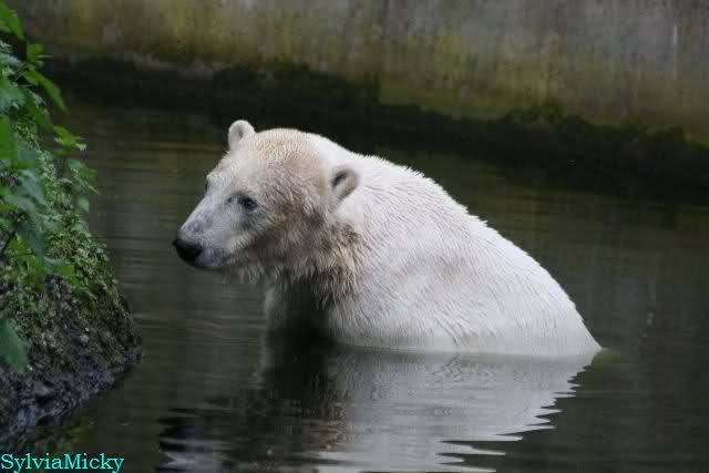 Nach der Fütterung ging es ähnlich weiter wie heute Vormittag; nur das Knut wieder die Farbe eines Eisbären angenommen hat.