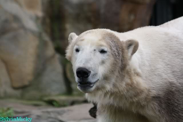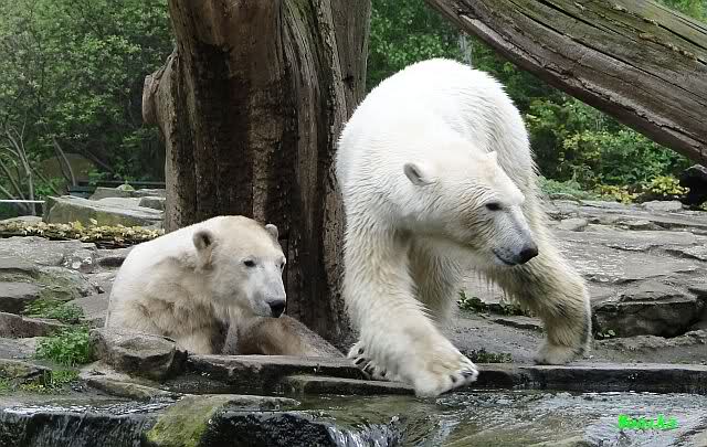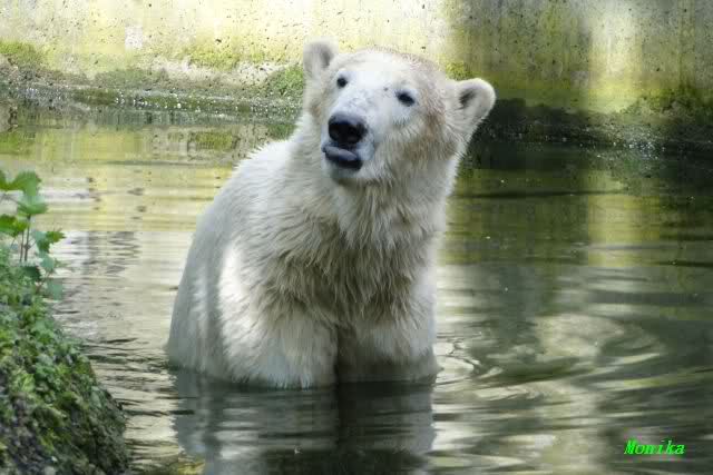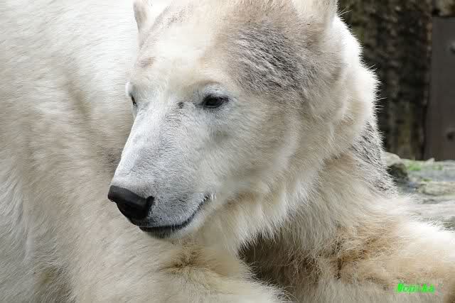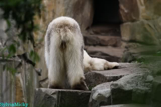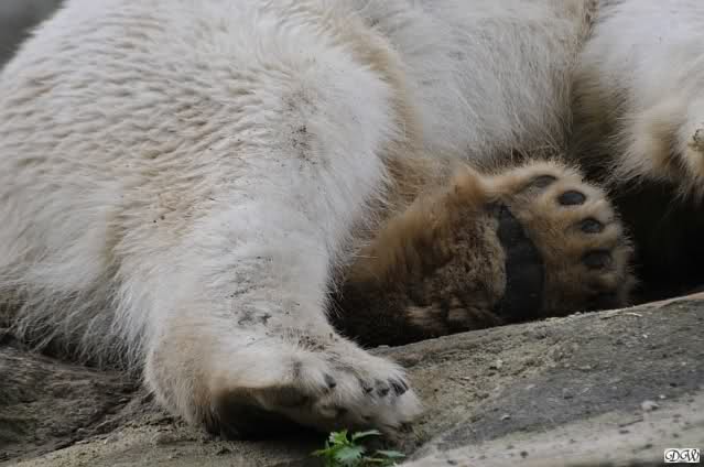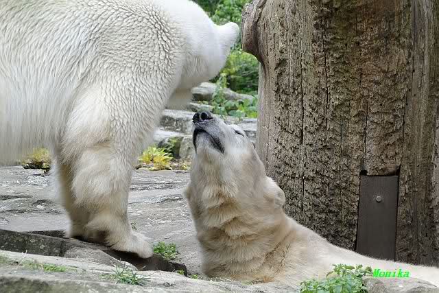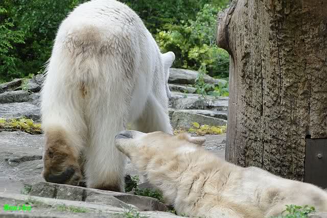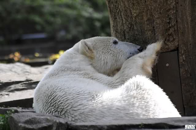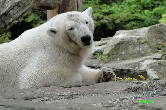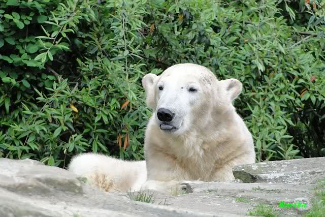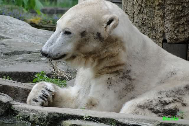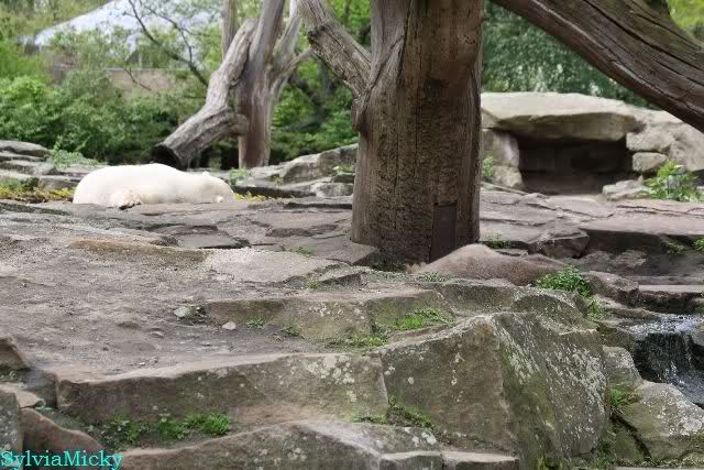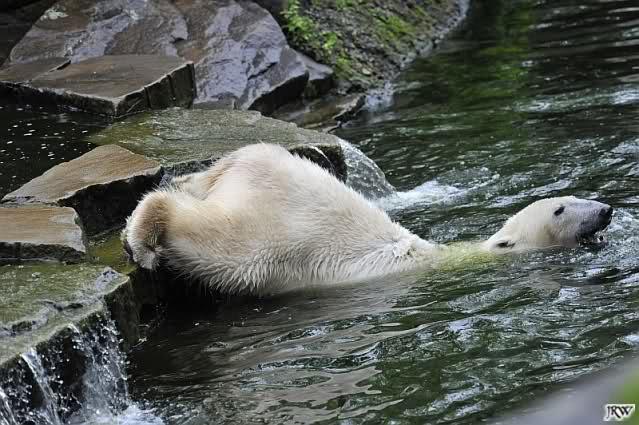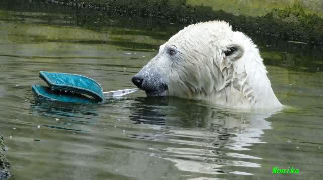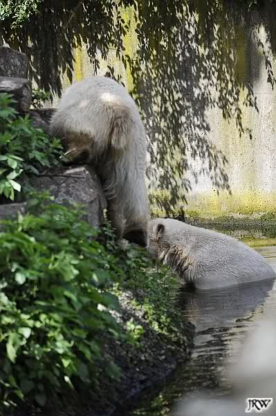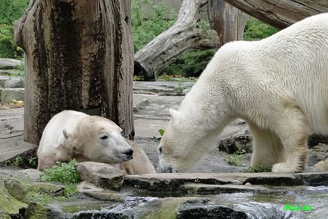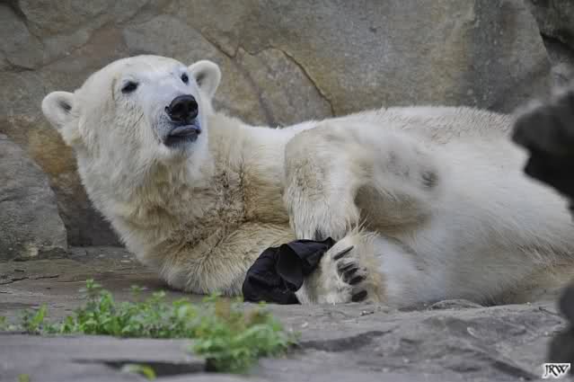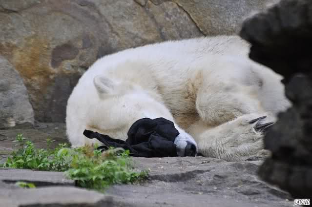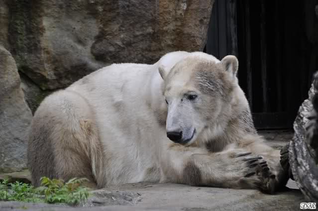 Nach der Fütterung ging es ähnlich weiter wie heute Vormittag; nur das Knut wieder die Farbe eines Eisbären angenommen hat.