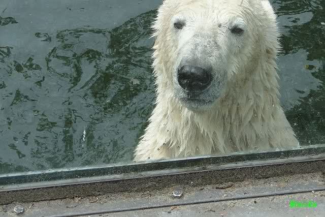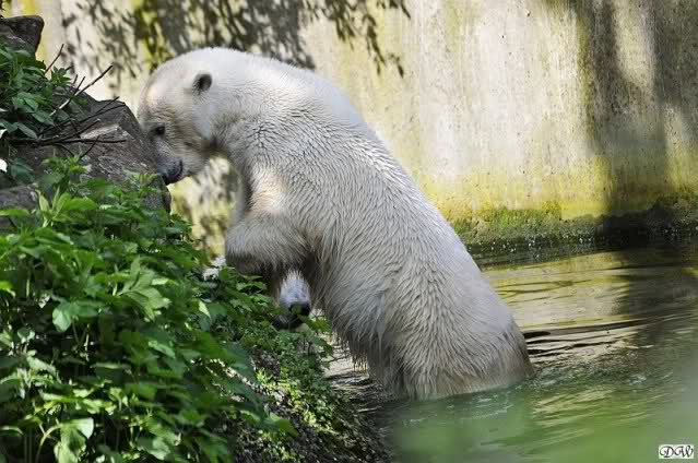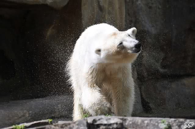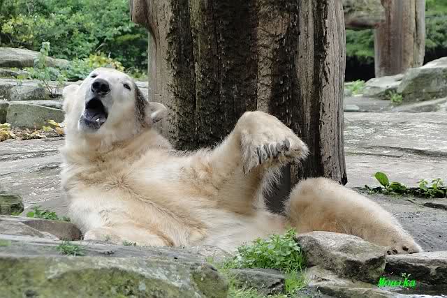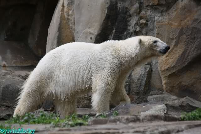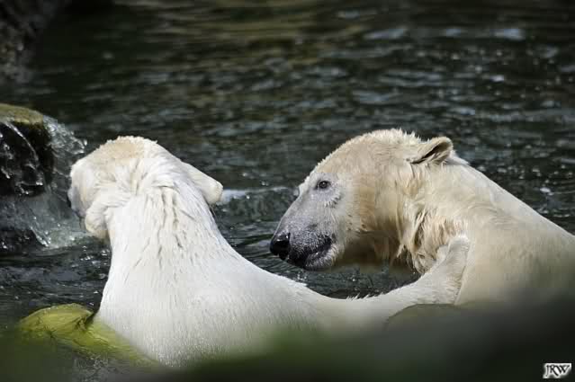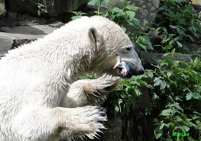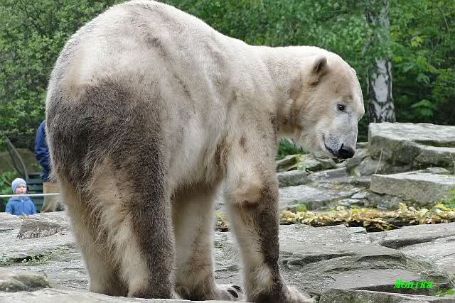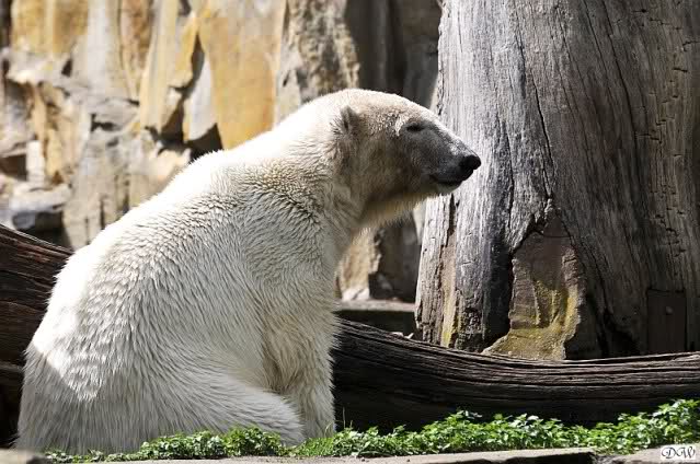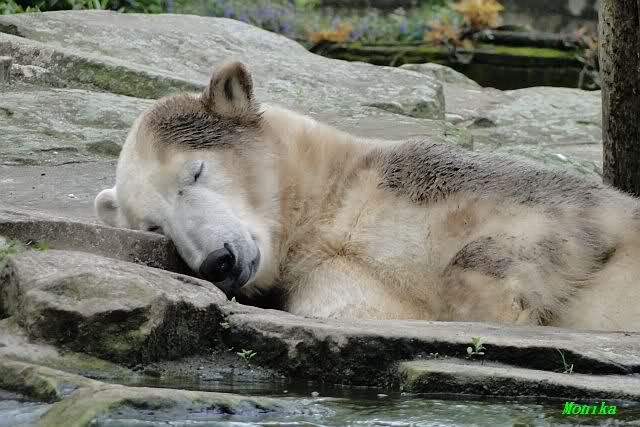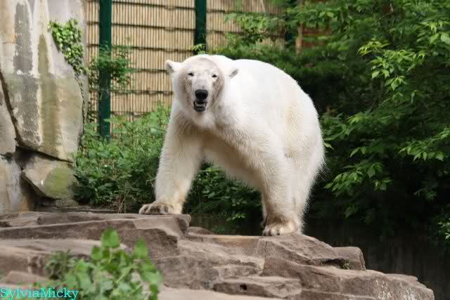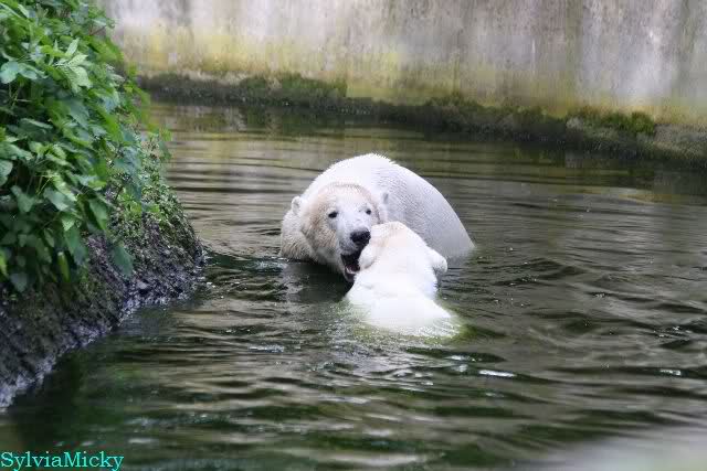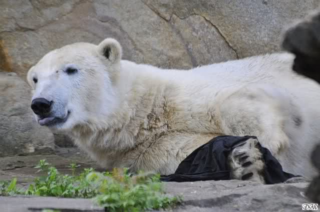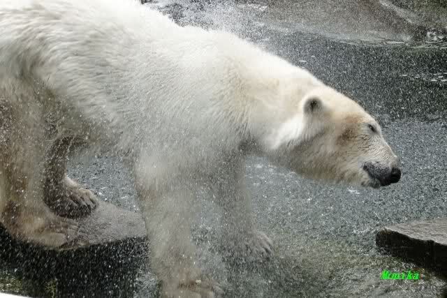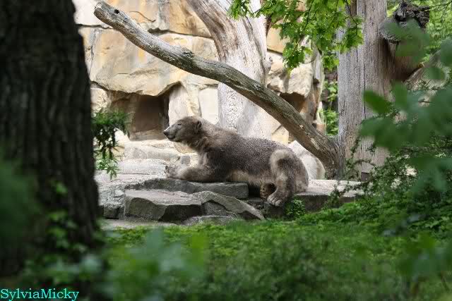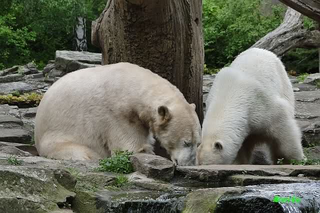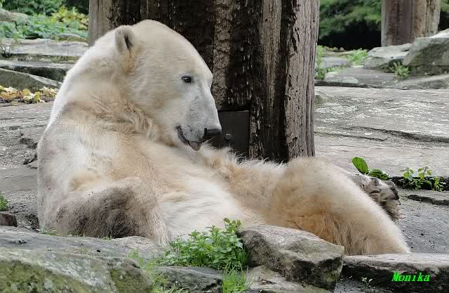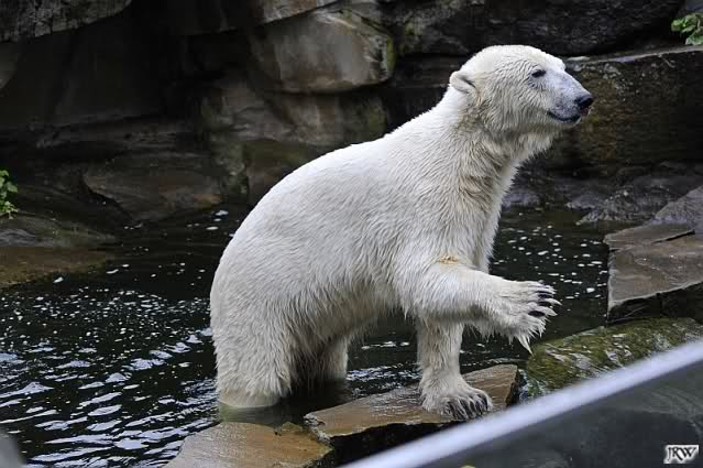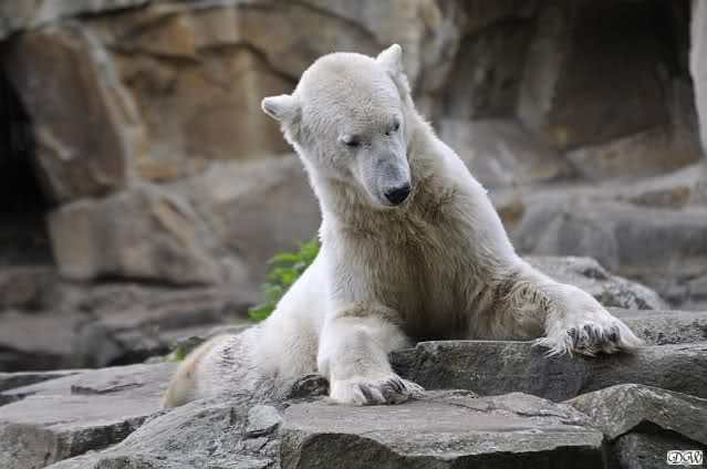 Nach der Fütterung ging es ähnlich weiter wie heute Vormittag; nur das Knut wieder die Farbe eines Eisbären angenommen hat.