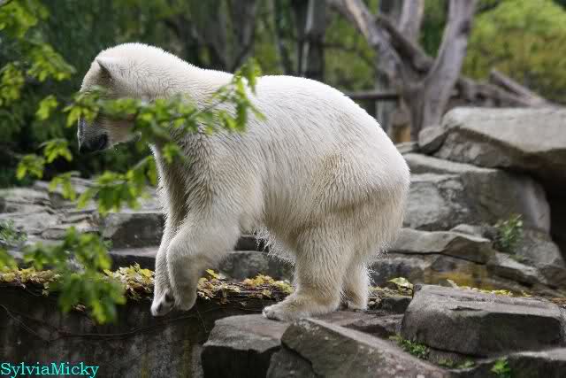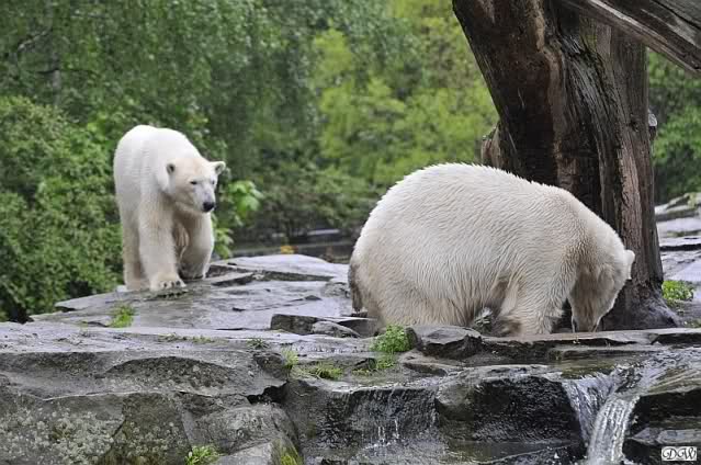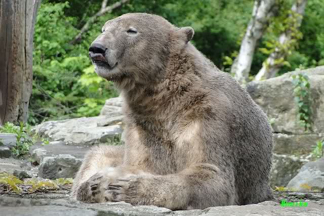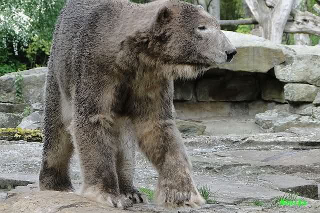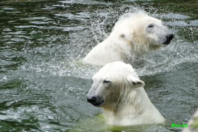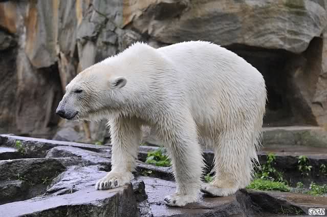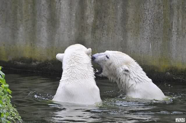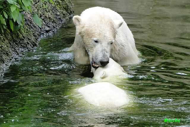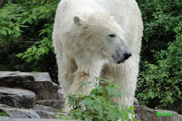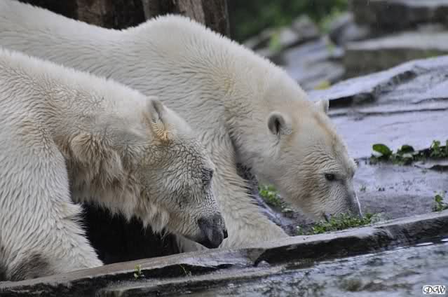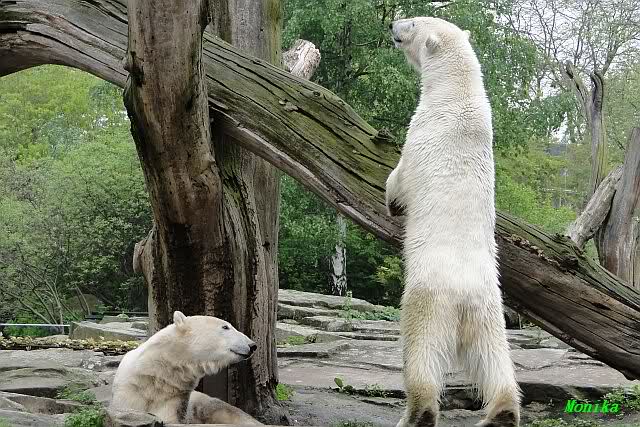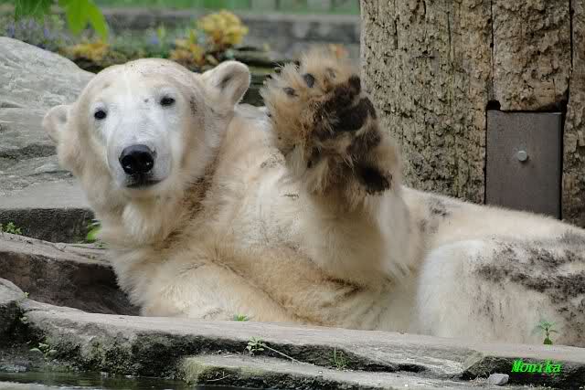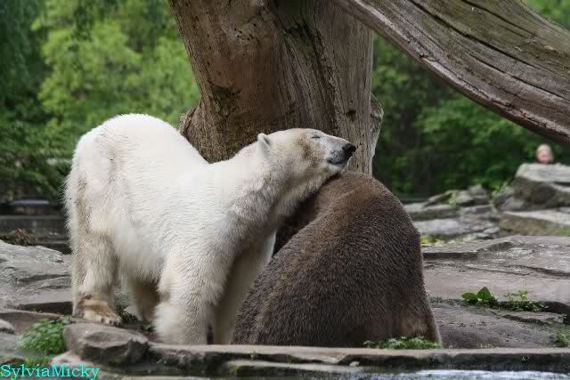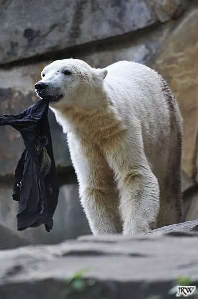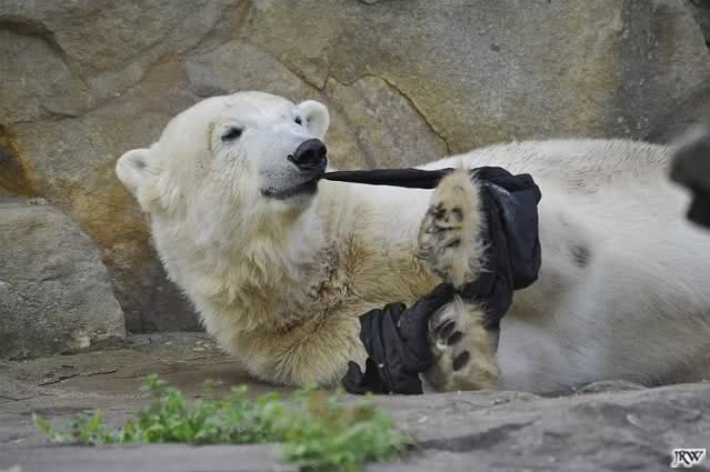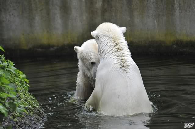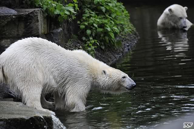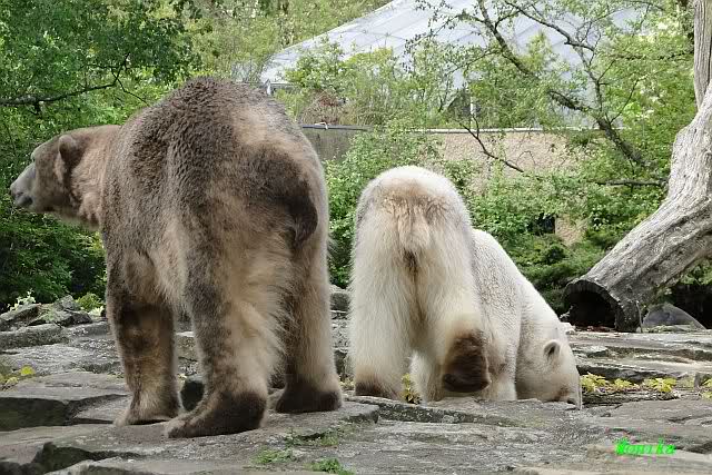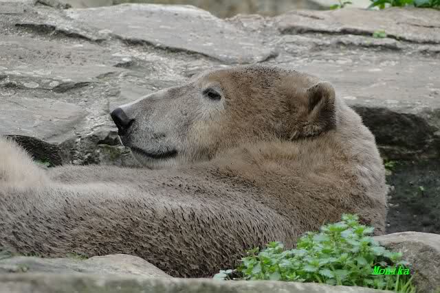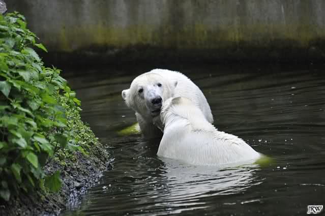 Nach der Fütterung ging es ähnlich weiter wie heute Vormittag; nur das Knut wieder die Farbe eines Eisbären angenommen hat.