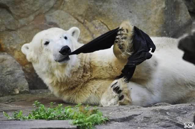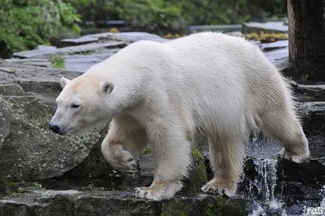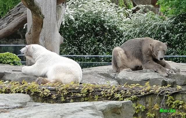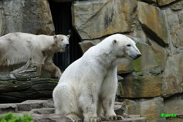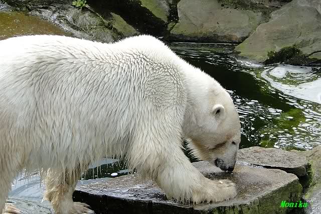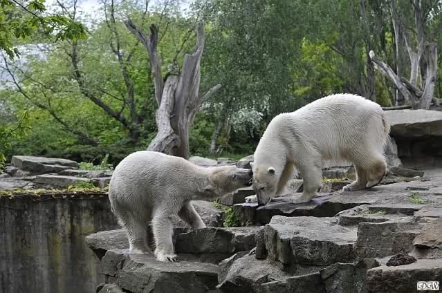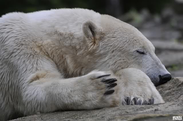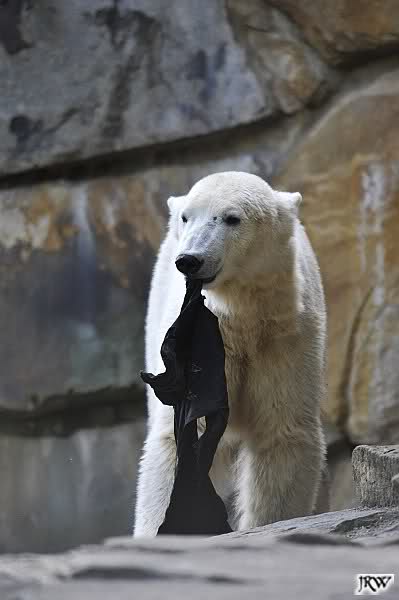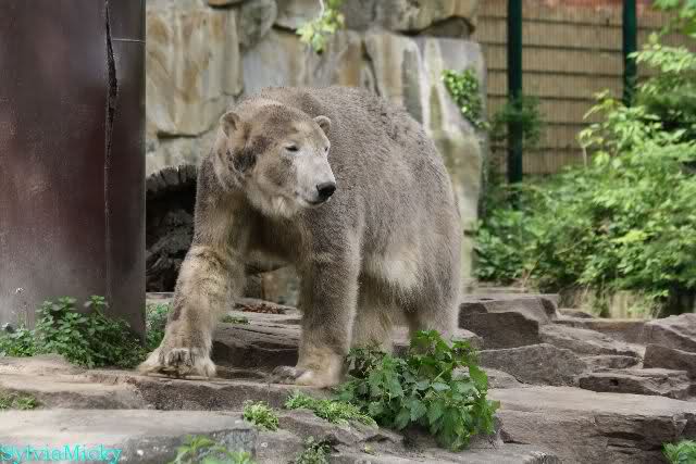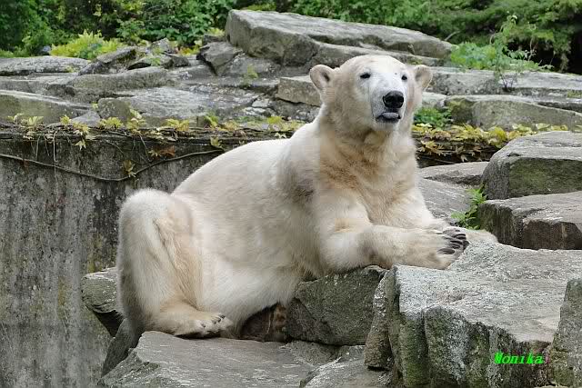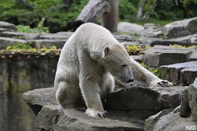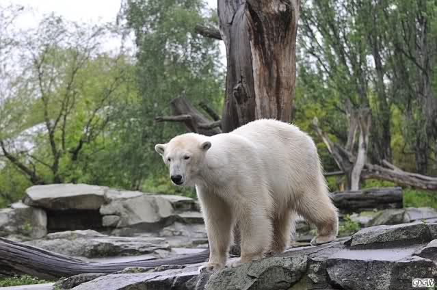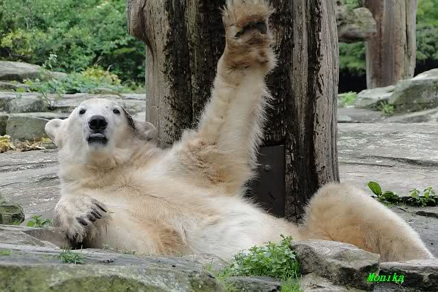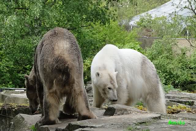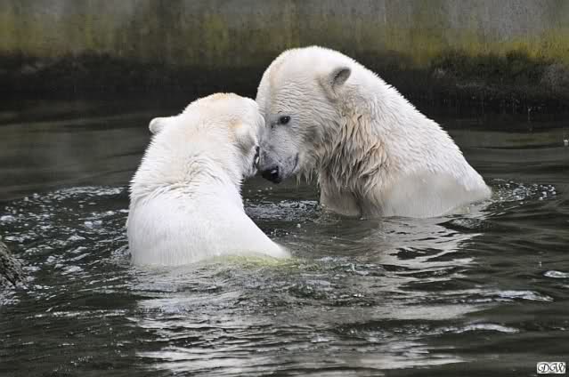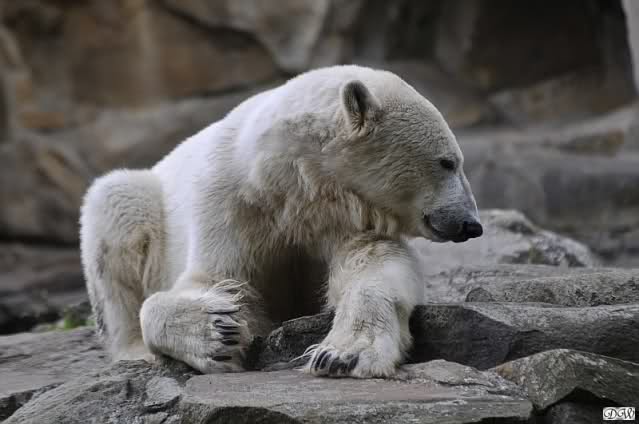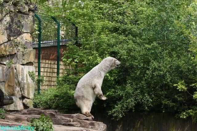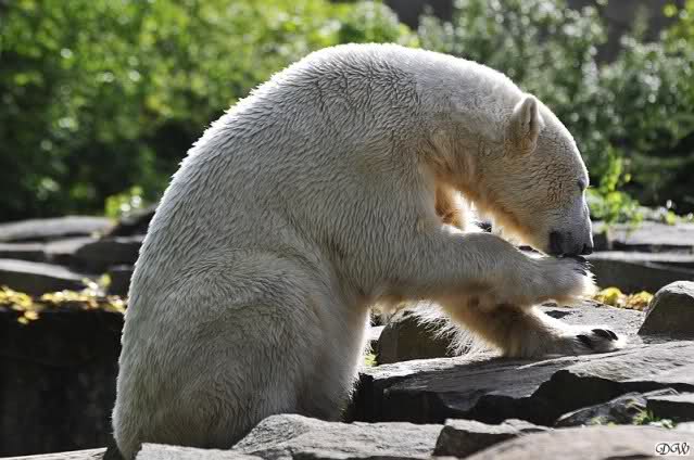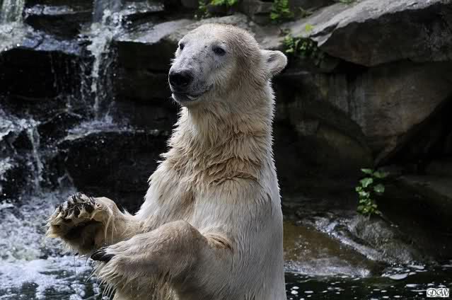 Nach der Fütterung ging es ähnlich weiter wie heute Vormittag; nur das Knut wieder die Farbe eines Eisbären angenommen hat.