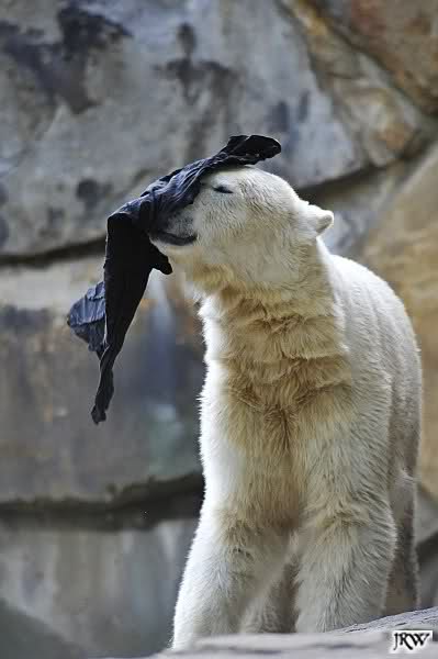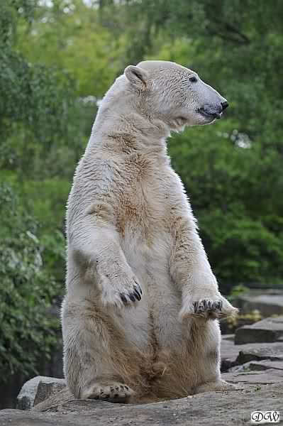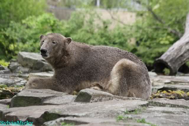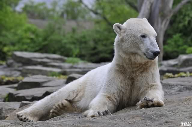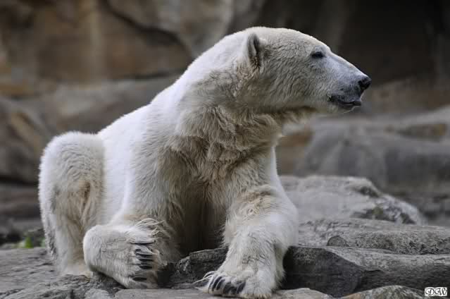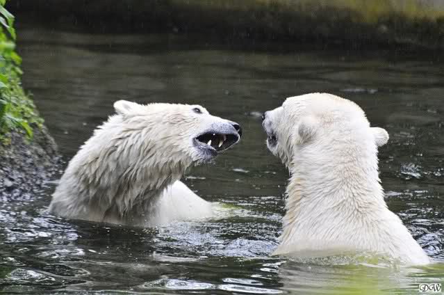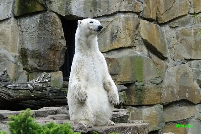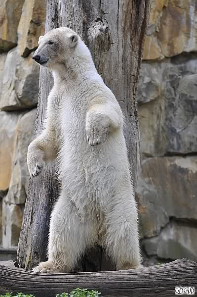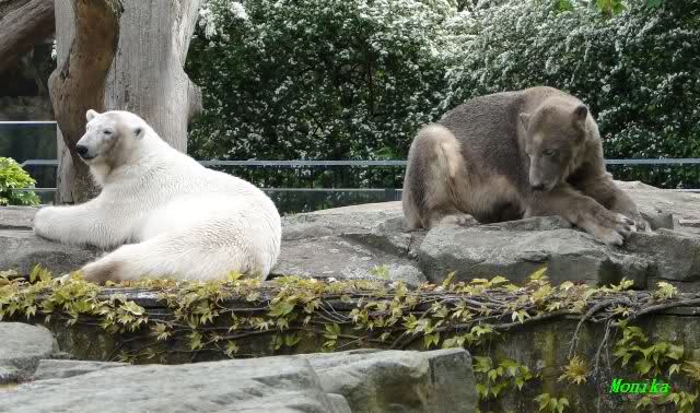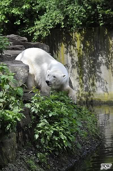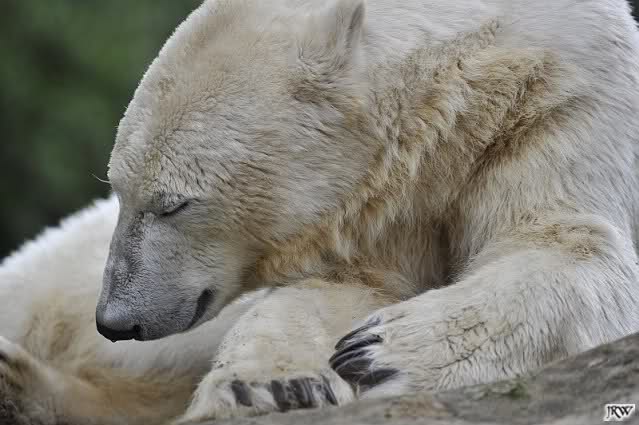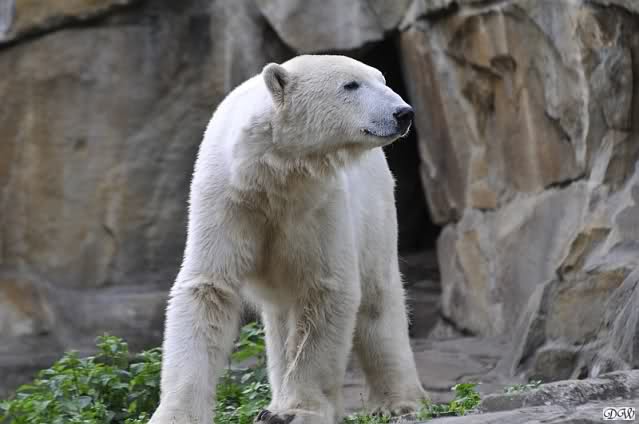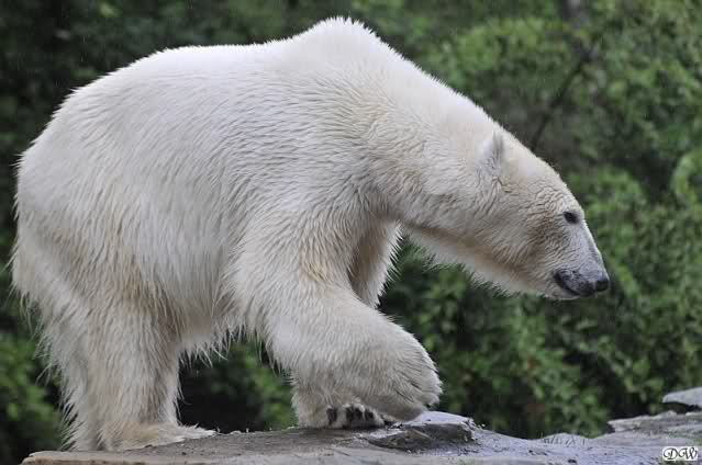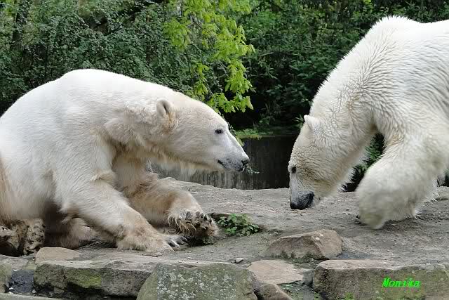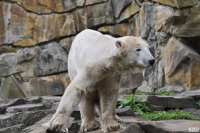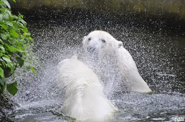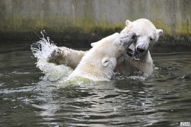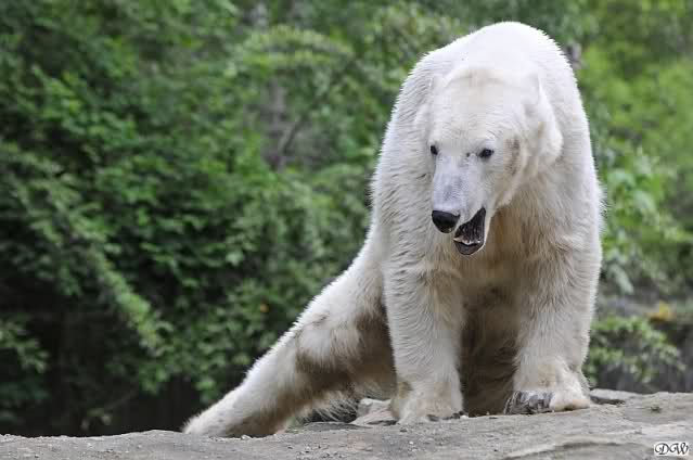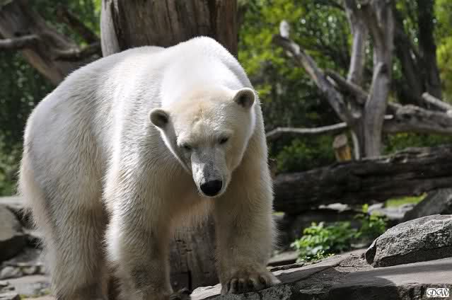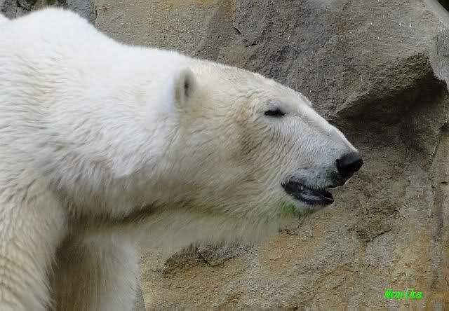 Nach der Fütterung ging es ähnlich weiter wie heute Vormittag; nur das Knut wieder die Farbe eines Eisbären angenommen hat.