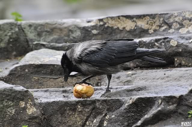 Die Krähe räumte das Spatzennest aus. Unter dem Baum schlief Knut.