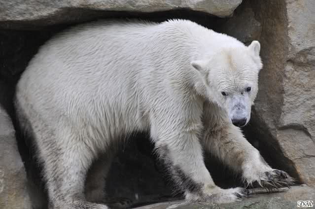 Erstaunlich war heute an einem wirklich ekligen Tag (6 Grad und Dauerregen), dass fast alle Kältefans fehlten . Eine treue Knutfreundin harrte von 09.00 Uhr morgens aus, allerdings schien auch sie nicht allzu angetan von dem Wetter heute. Sie wartete auf Schnee