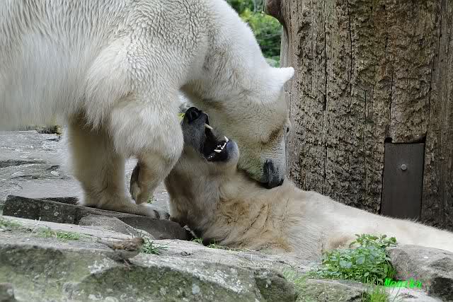 Als Knut sich unter den Baum legte, kam Gianna immer wieder zu Knut und es wurde geschmust. Knut war heute gar nicht abgeneigt. Wenn Gianna fort ging schaute er ihr hinterher, als wenn er sagen wollte "komm doch wieder her". Und sie kam.
