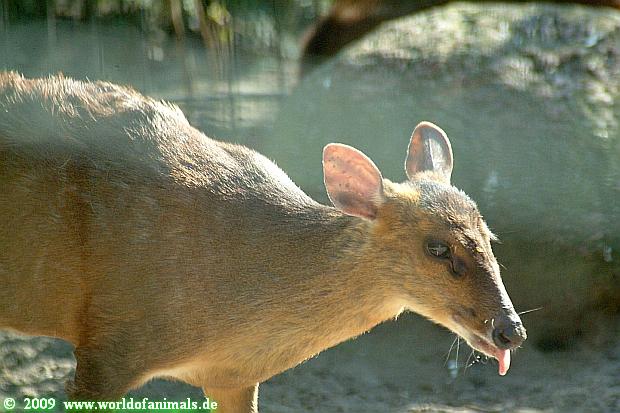 Die folgenden Fotos sind für die Paten des kleinen Muntjak: Doris und Jessie. Dem kleinen Muntjak geht es gut, wird es am 21. April doch schon 2 Monate alt.