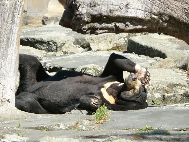 Unser Lippenbär, der sich mit den Malaienbären eine Anlage teilen muß aus Platzmangel. Die Malaien am Tag und der Lippenbär Abends und Nacht.