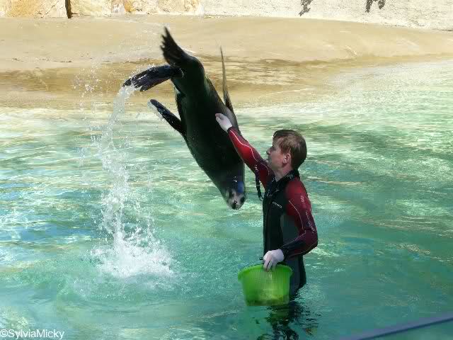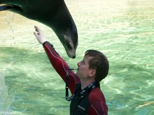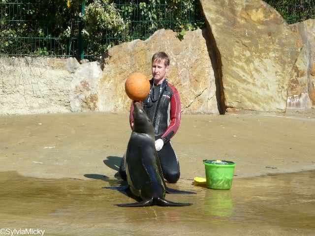 Heute fütterte ein anderer Pfleger die Robben. Er machte es sehr gut.