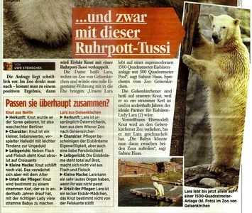 Falls Knut wirklich weg muss, plädiere ich allerdings persönlich auch für die Lösung Gelsenkirchen. Dort hat man eine wunderbare Eisbärenanlage. Es würde alles passen.