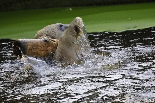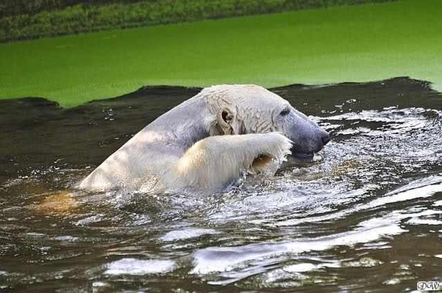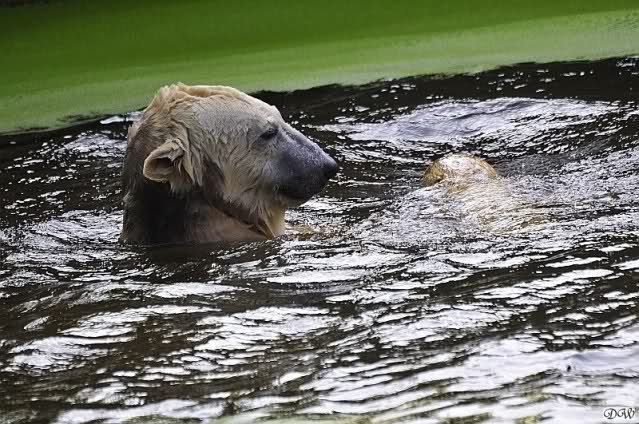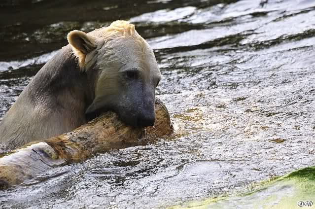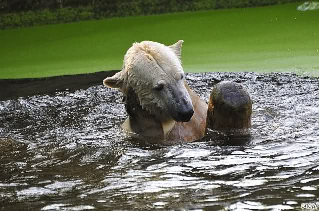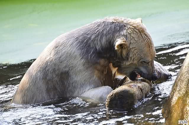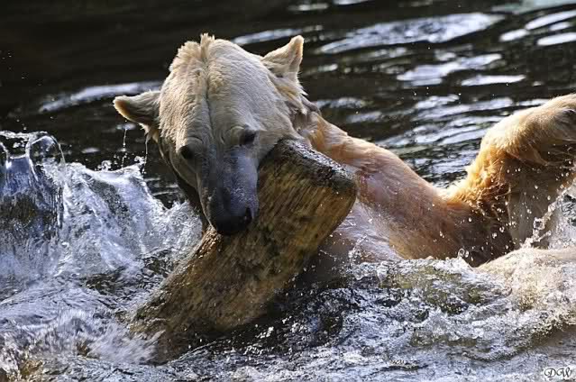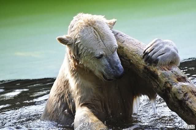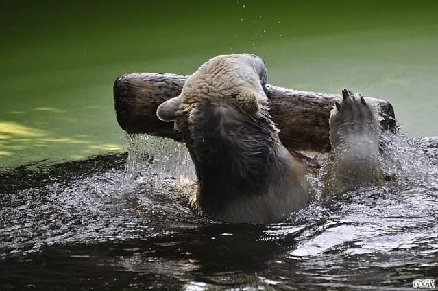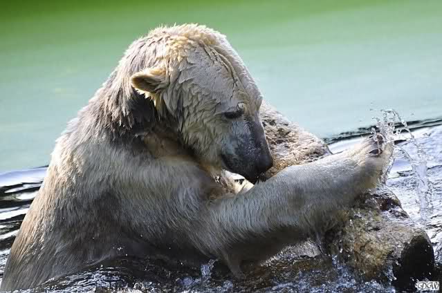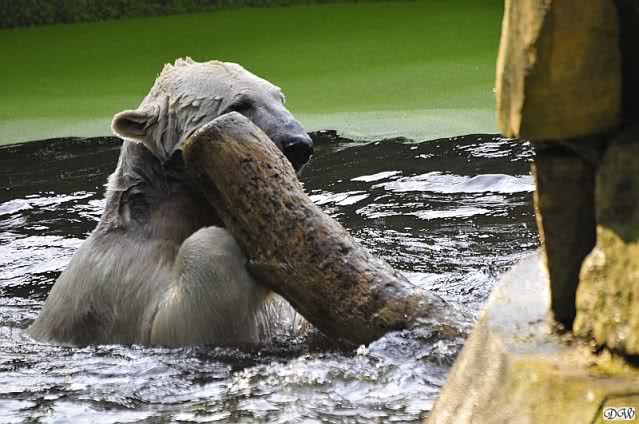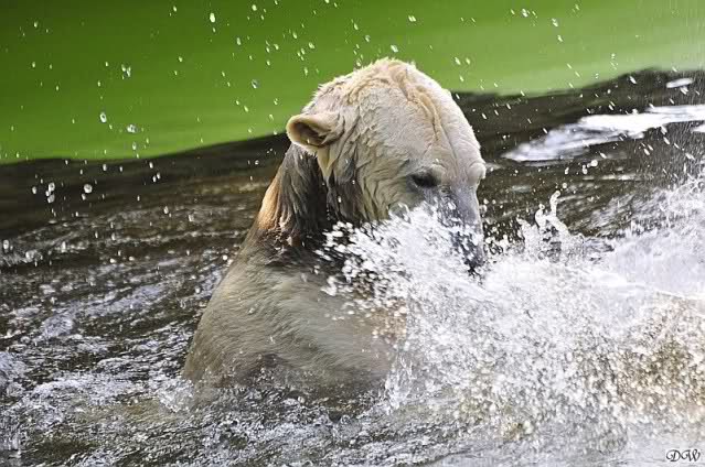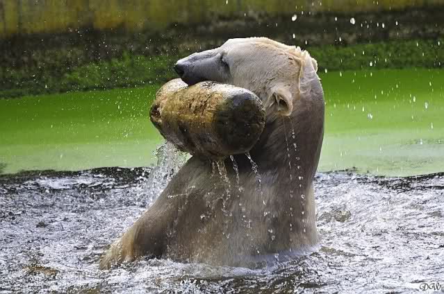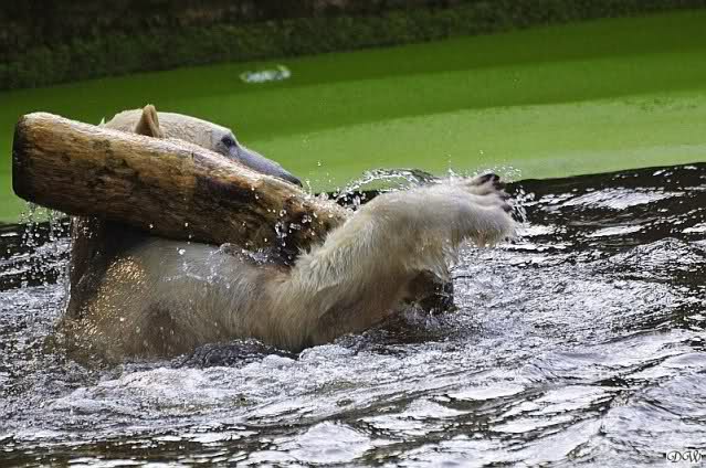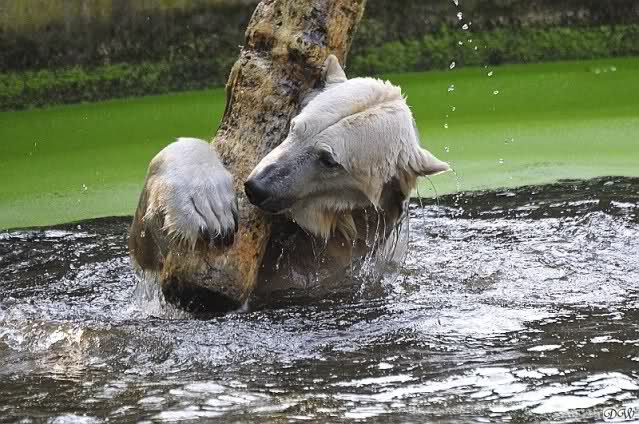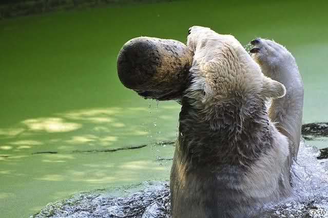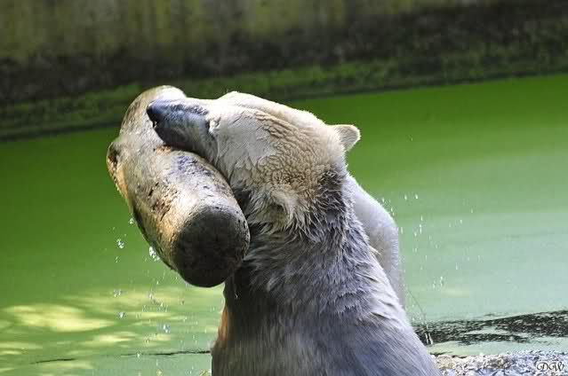 Da ich heute auf Tour war (ich erfuhr erst heute früh wo es hingeht) und nicht zu Knut konnte, freue ich mich besonders über die wieder tollen Fotos vom Bärenjungen. Es ist doch prima, das die vielen auswärtigen Besucher einen ausgelassen spielenden Eisbärjungen sehen konnten.
