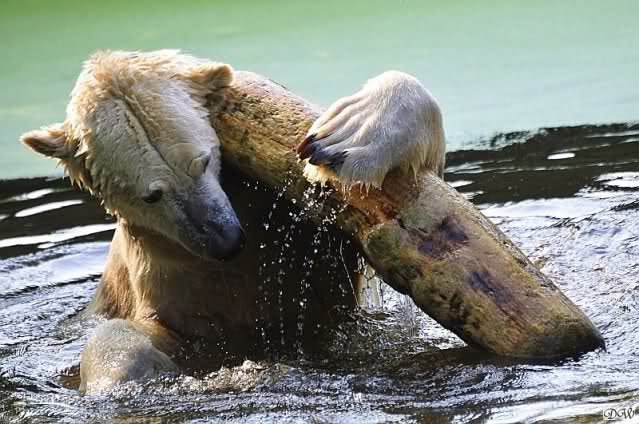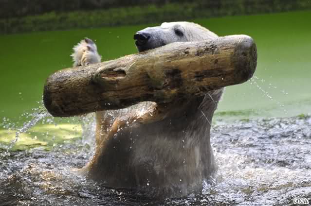 Wieviel Freude hat Knut mit seinem Baumstamm. Das scheint ihm den größten Spaß zu machen. Herrliche Fotos.