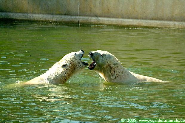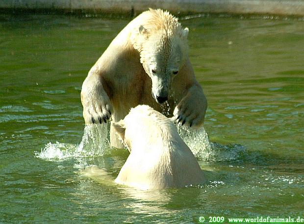 Hier nun die schönen, aber leider viel zu seltenen Bilder der glücklich spielenden Eisbären.