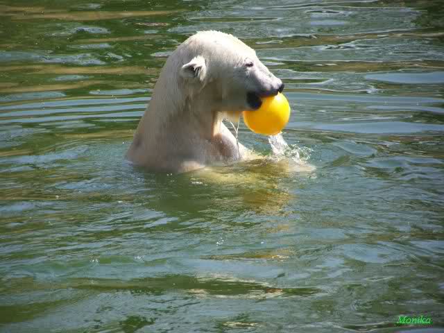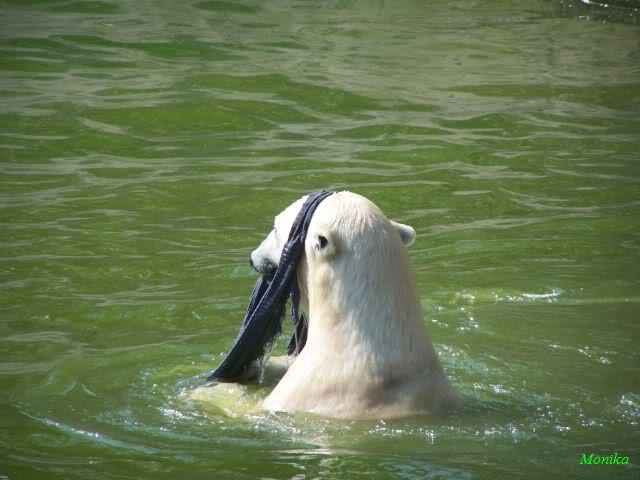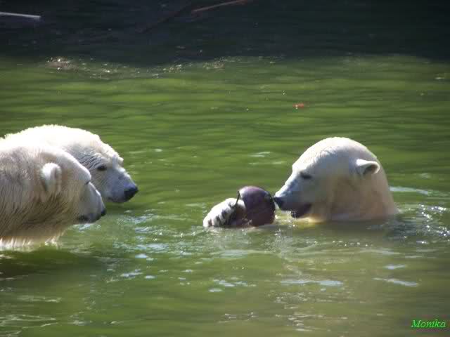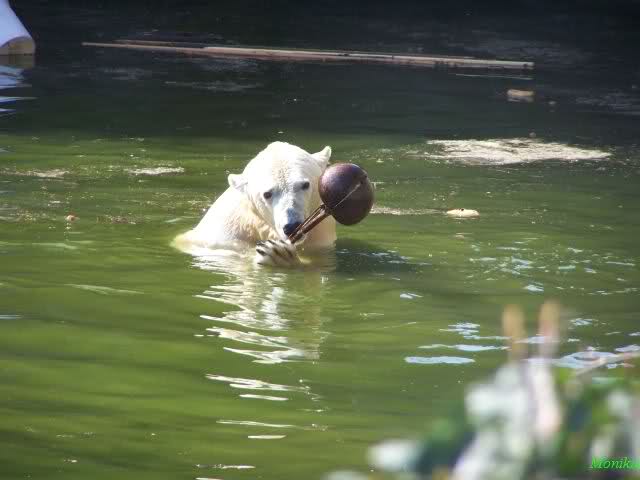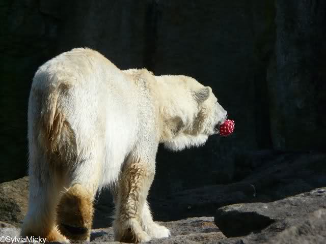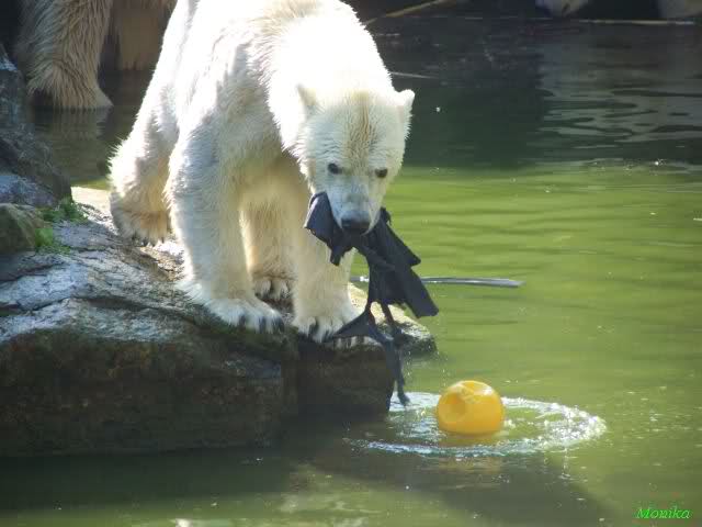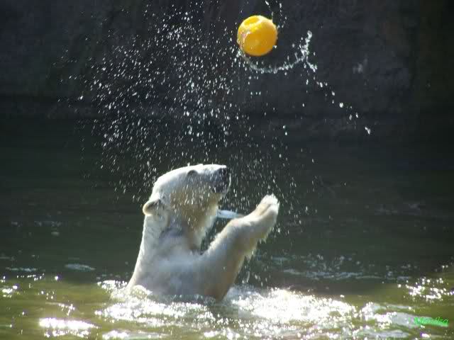 Gestern standen zwei jüngere Frauen neben mir am Gehege und sagten: Knut spielt viel besser als die Großen. Ich sagte: mit was sollen sie denn spielen, sie haben doch nichts.