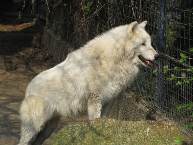 Ein Wolf auf dem Braunbärengehege. Die Wölfe wurden heute von Siddy ganz schön übers Gelände gejagt.