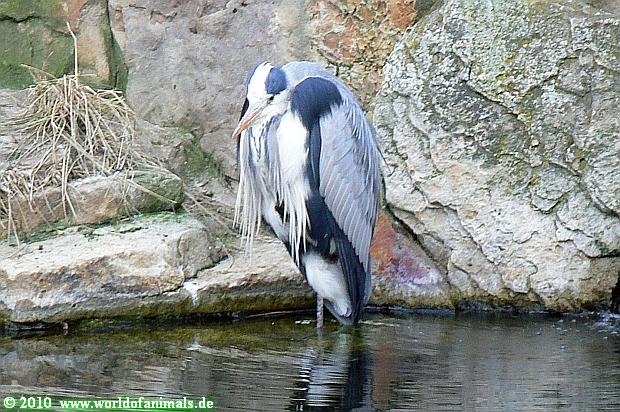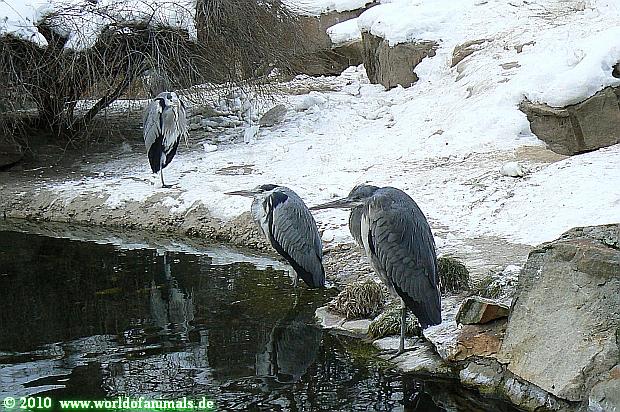 Minus 15 Grad in der Nacht: Da suchen diese Fischreiher Schutz bei den Eselspinguinen und stehen teilweise mit ihren Beinen im Wasser. Das ist nicht so kalt wie die Aussentemperaturen. Wie die Störche halten auch die Reiher nur bis zu bestimmten Minusgraden durch. Empfindlichste Stellen sind ihre Beine.