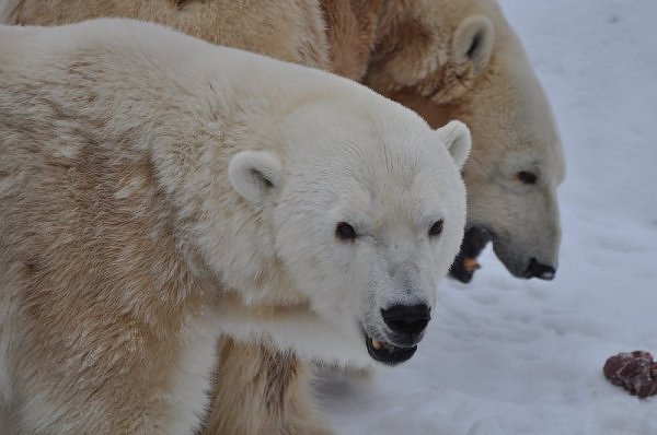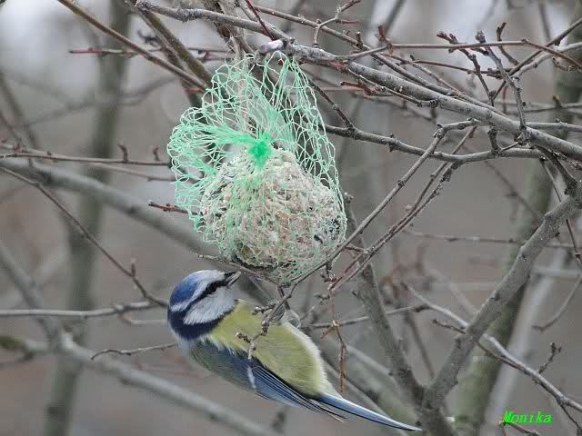Die Vögel im Zoo werden gut gefüttert. Viele Besucher bringen etwas mit. Nicht nur am Gehege von Knut wird Futter verteilt und Meisenknödel, Meisenringe und Erdnußsäckchen angehangen.