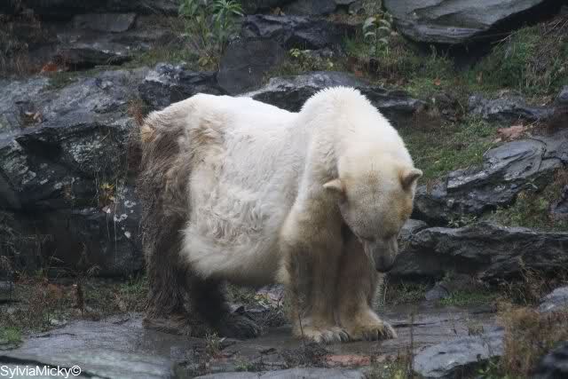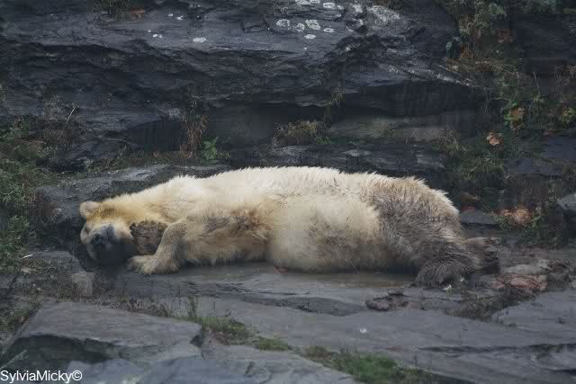 Hallo Sylvia, schön das Du heute im Tierpark bei Lisa warst. Die Fotos sind leider nicht so schön anzusehen. Ich frage mich nur, wie soll sie denn jemals wieder nach oben kommen, wenn sie kaum einen Schritt machen kann. Es geht ja doch ziemlich steil nach oben. Da nützt es doch sehr wenig, wenn oben Futter als Lockmittel hingelegt wird, wenn sie keine Kraft hat, dahin zu kommen.
