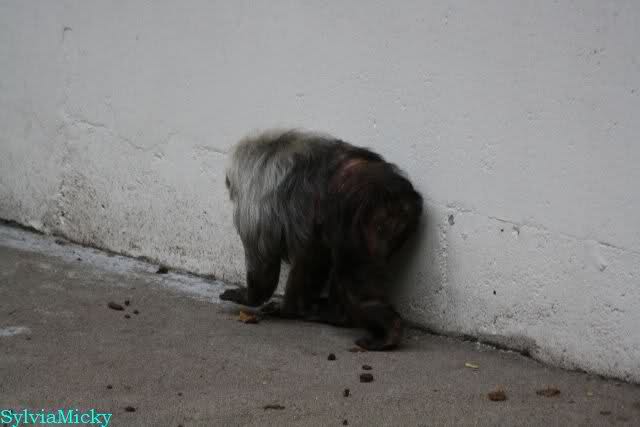 Jedes Mal wenn ich bei den Makaken vorbei gehe, laufen sie im Graben und sammeln welke Blätter