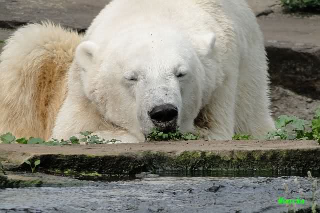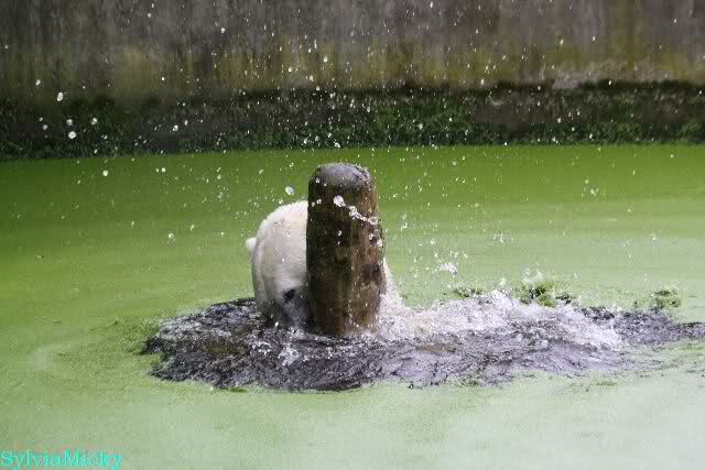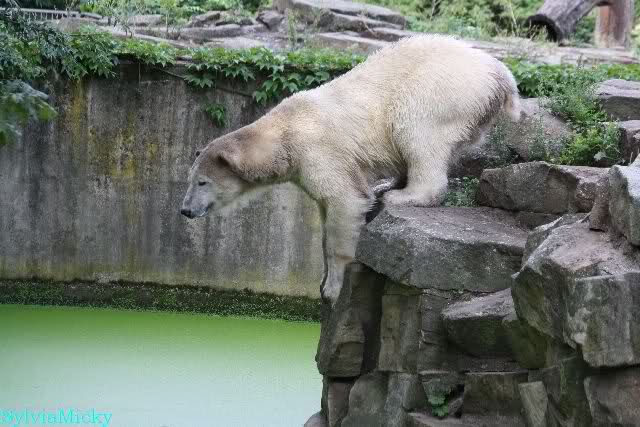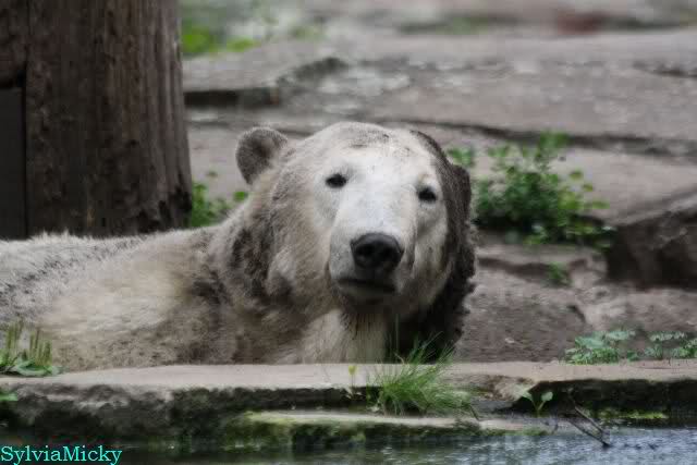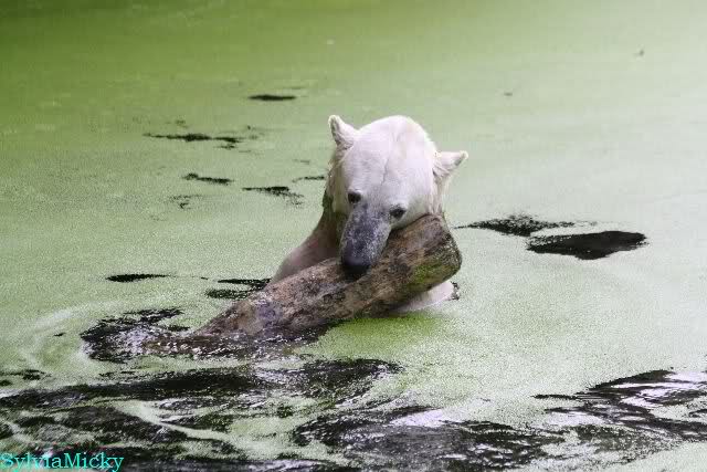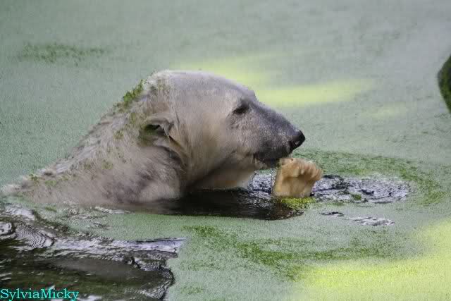 Mich machte gestern auch traurig, als ich vor Knut`s Gehege stand und die Dreckbrühe sah. Gut, die Entengrütze soll ja nicht schädlich sein, aber wenn man bedenkt, dass die letzte komplette Erneuerung des Wassers Ende März 2010 war, kommt mir das Grausen - nicht nur die Fäkalien werden ins Wasser gespült, auch das Fleisch wird bei der Fütterung ins Wasser geworfen. Mich wundert wirklich, dass hierbei nicht Krankheiten auftreten!