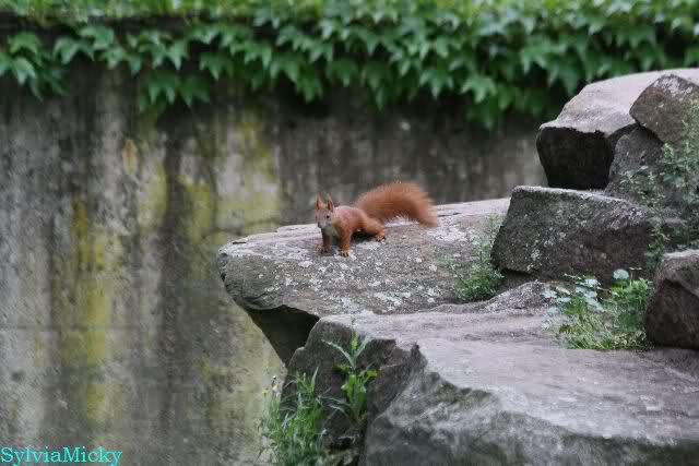 Drollig das sich da eine kleines Eichhörnchen auf die Anlage verirrt hat. Tja, Knut, da musste noch ein bischen wachsen um an das Eichhörnchen heranzukommen.