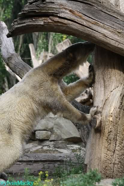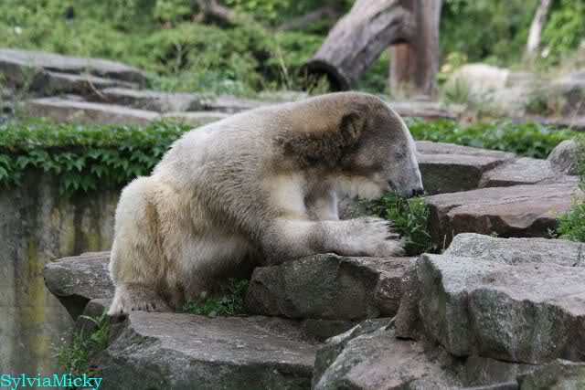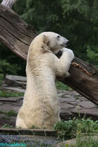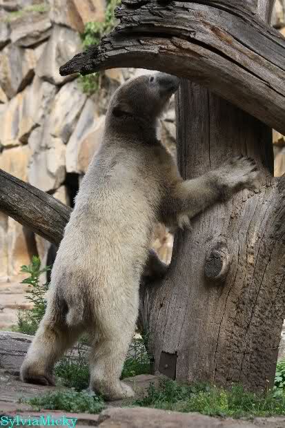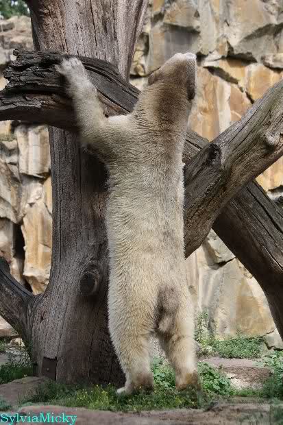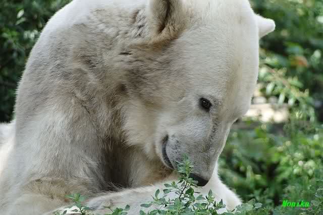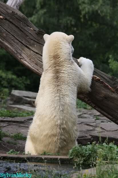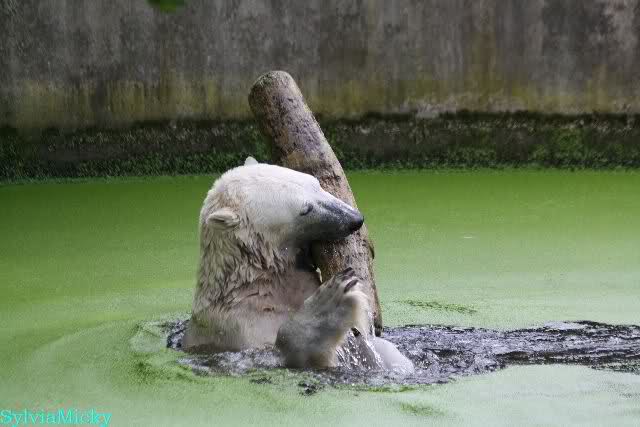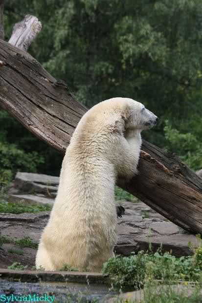 Monika, Deine Fotos von Knut bei seiner "Gartenarbeit", sind wunderschön, eines besser als das andere, da war ich leider noch nicht im Zoo. Als Knut jedoch vor der Fütterung so ausgiebig mit seinem Holzstück spielte, war ich mit dabei und wir erfreuten uns alle an dem spielenden, fröhlichen Knut. Man kann den Eisbären (und nicht nur diesen Tieren) mit so wenig Dingen eine Freude machen, es kostet nicht viel Geld, man muss nur Ideen haben und wollen.