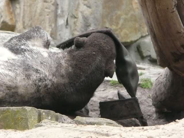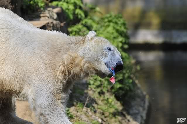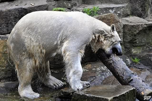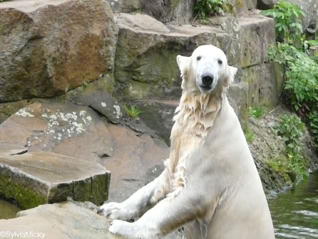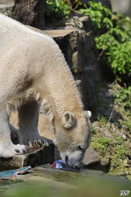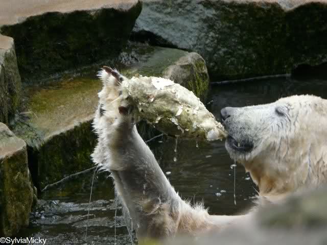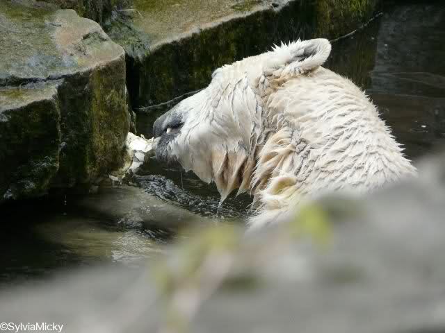 Am Nachmittag gab es wieder das volle Puderprogramm immer begleitet von Rufen neuer Besucher: das ist doch nicht Knut, das ist doch kein Eisbär