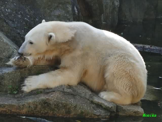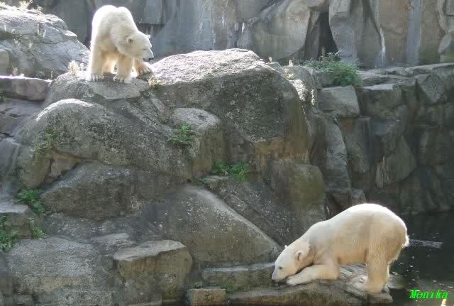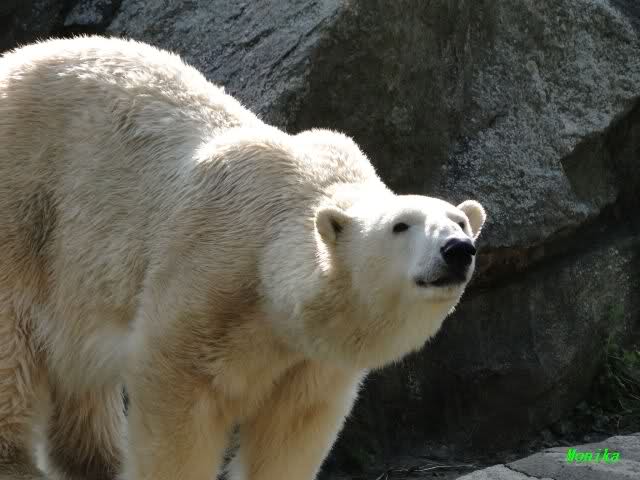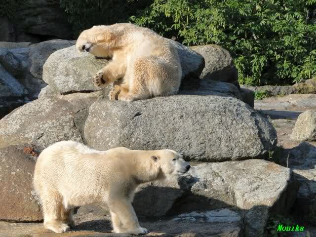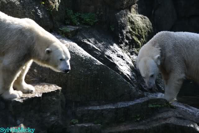 Gegen Mittag war Knut im Wasser. Die Bären auf der Anlage. Nancy ging dann zu ihm runter. Er fauchte sie aus dem Wasser aus an. Er ging dann auf die Felsen, wo dann Nancy und Tosca zu ihm gingen. Es gab dann ein kurzes Geplänkel mit Nancy. Die Bären gingen nach oben und Knut lag den ganzen Nachmittag unten rechts auf dem Felsen.