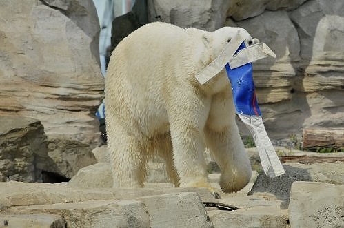 Die Zoowärter des Asahiyama Zoos überraschten ihre Affen, Pinguine und Eisbären am frühen Morgen mit Eisblöcken. Insgesamt wurden die Tiere, welche ursprünglich in Frost und Eis leben, mit 1,5 Tonnen gefrorenem Wasser beglückt.