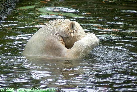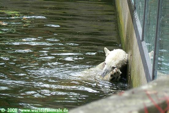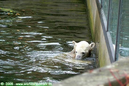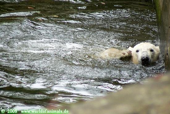 Nachdem wir uns gestärkt hatten, gingen wir wieder zu Knut. Der war am Schwimmen.