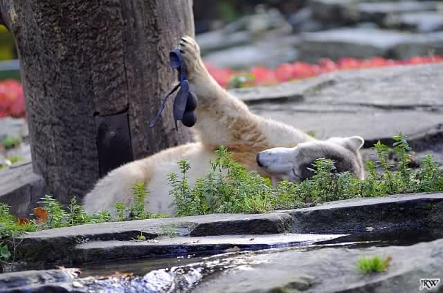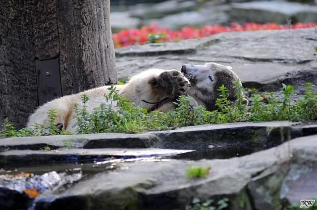 ja ,Du süßer Schlingel fein ausgedacht,ich soll die Bälle aus dem Wasser holen Knut?!,Brrrrrr,mir is eher danach mit Dir zu Kuscheln,Kraule auch Deine Öhrchen,