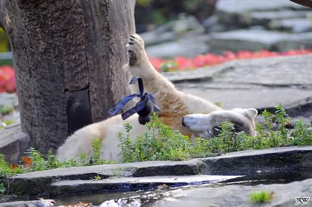 Good evening to you all Knut friends around the world. Earlier than all the other days comes my little dose of Knut. I have many fun with Jessies Knut pictures, posted by Ursula today. Knut and his new toys. Enjoy our polar bear youngster ...