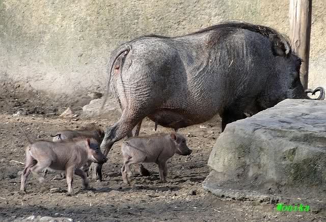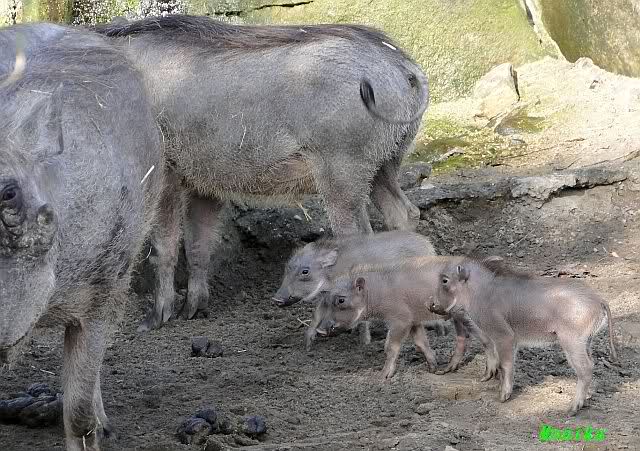 Die drei kleinen Warzenschweine waren schon früh auf der Anlage.