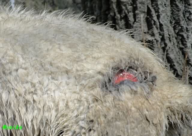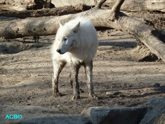 So sah die Wunde heute aus. Sieht zwar immer noch schlimm aus, aber der Wolf scheint aber keine Schmerzen zu haben. Er tollte mit den anderen zusammen, sühlte sich im Sand und war auch im Wasser.