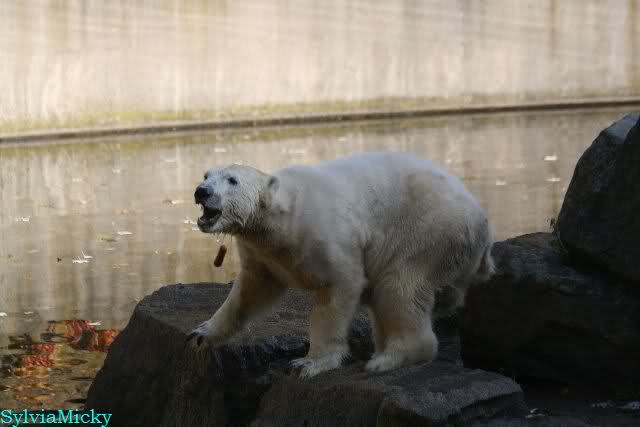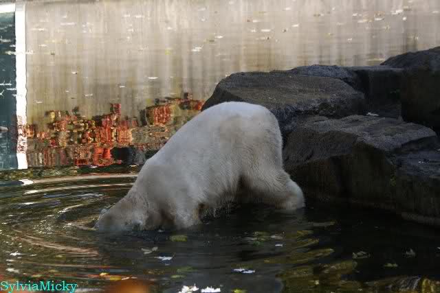 Da zog es Knut vor, weiter nach hinten zu gehen. Der Pfleger mußte mit dem Eimer hinterher (natürlich vor dem Gehege).
