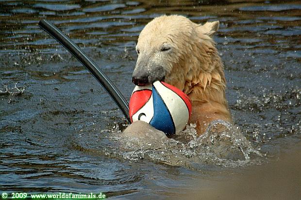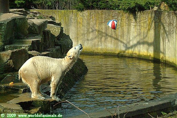 Heute spielte Knut wieder mit Ball und den Zuschauern.