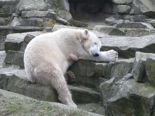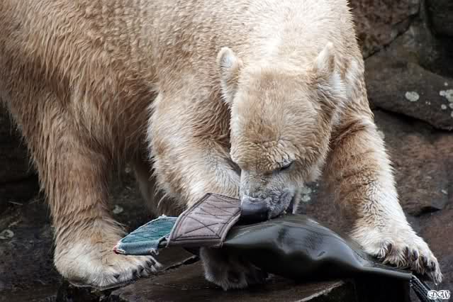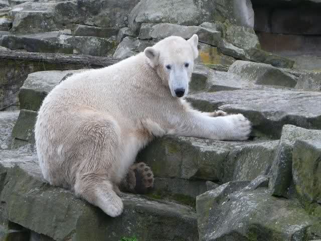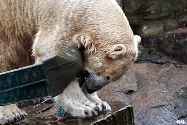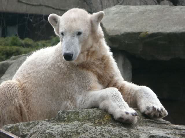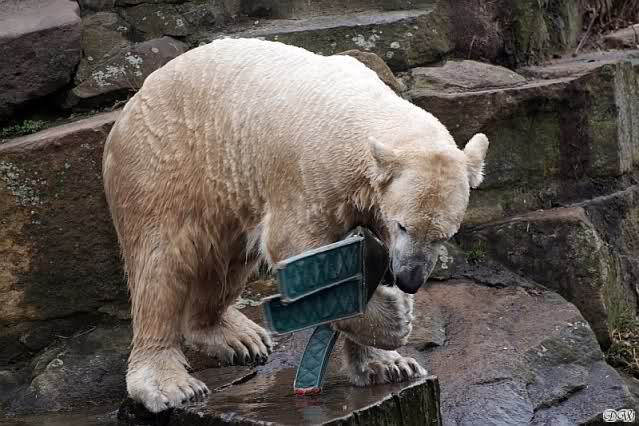 Auch ich war heute im Zoo. Knut wurde um 14:30 h gefüttert. Eigentlich war es ja erst 13:30 h. Nach der normalen Zeit, bekam der Bär, Idefix schrieb es ja schon, sein Futter eine Stunde früher als sonst.
