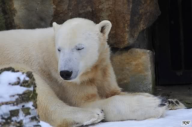 Knut und Gianna hatten heute wohl den Montags-Blues. Sie waren müde und generell unlustig. Beide bekamen heute wieder Lachse von dem Münchener Besuch. Auf der Anlage war nichts für Gianna zu finden und auch im leicht gefrorenen Wasser suchten beide Bären vergeblich. Das verbesserte Gianna’s Laune nicht. Sie beobachtete den Kragenbären. Später schaute Knut auch kurz zu. Dann wurde wieder ausgiebig geschlafen und ab und zu geschaut, ob es endlich Zeit sei hineinzugehen.