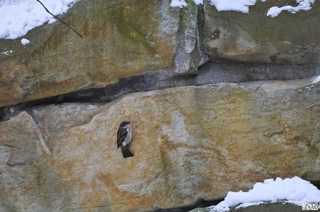 Nicht wirklich: die Nistzeit hat begonnen. Die Spatzen bauen Nester in den Mauerspalten und auch im Baum auf der Anlage
