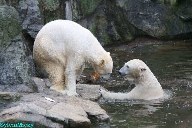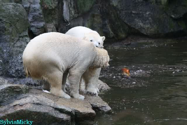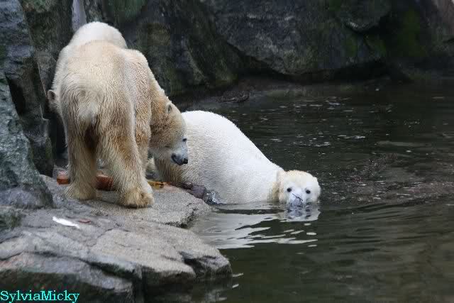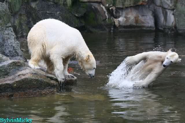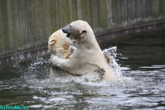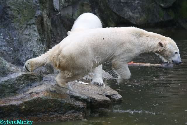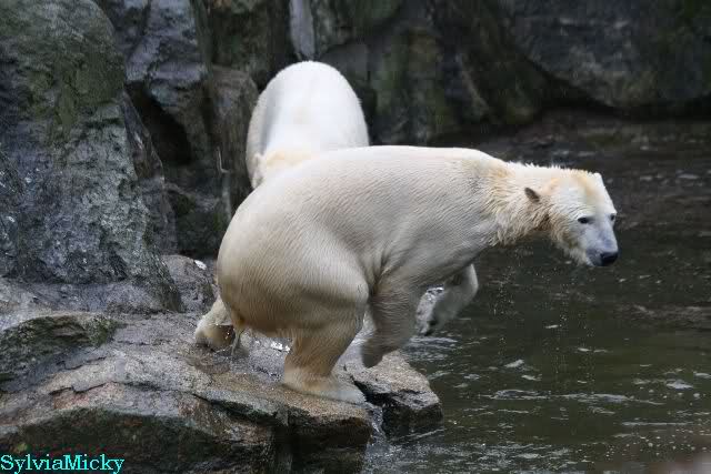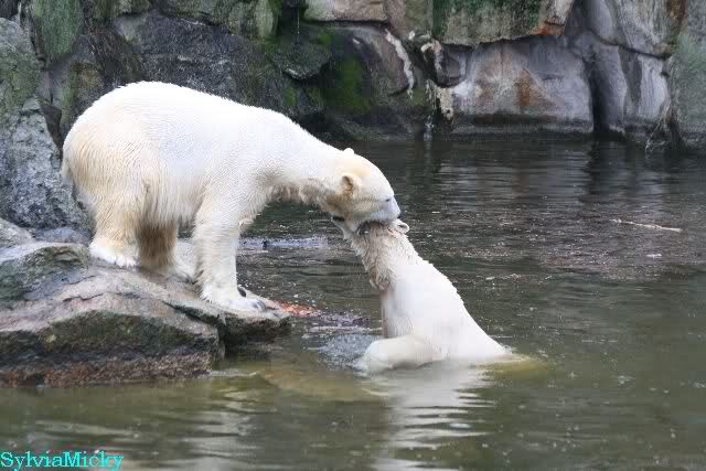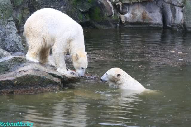 vielen Dank für Deinen heutigen Bericht und die Fotos. Tosca scheint ja echt Ausdauer darin zu haben, Knut ins Wasser zu locken. Schön dass sie mal wieder zusammen getobt haben. Ist ja schon toll, dass Tosca, die ja nicht mehr so jung ist, immer noch so gern spielt und wohl auch die temperamentvollste Bärin auf der Anlage ist, soweit ich das anhand Eurer Berichte und Fotos überhaupt beurteilen kann.