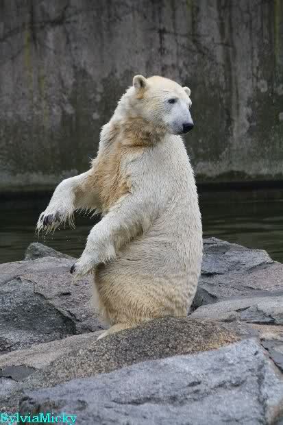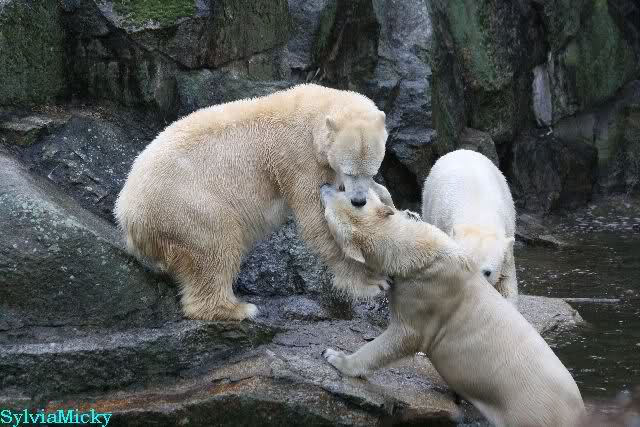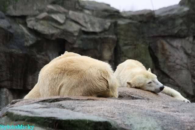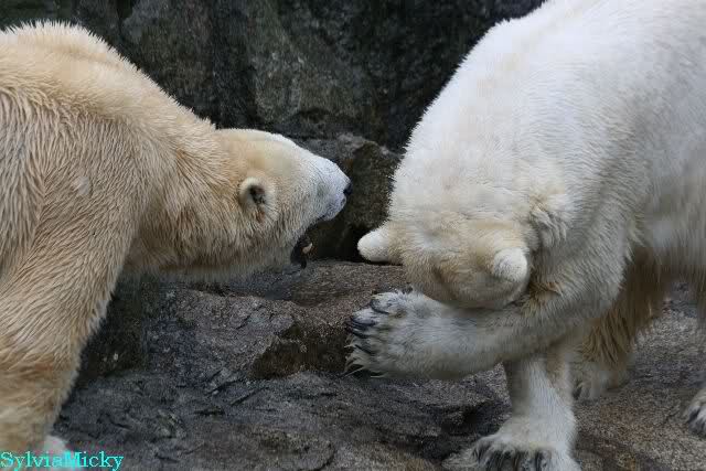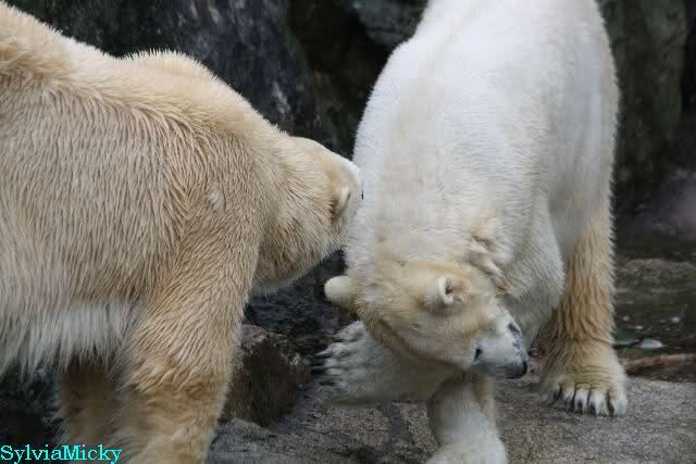 Ja, es war gestern ein besonderer Tag bei den Bären. Knut muß nur mitbekommen, daß Kati sowieso oben rechts hin und her läuft, egal ob er darunter liegt oder nicht.