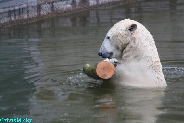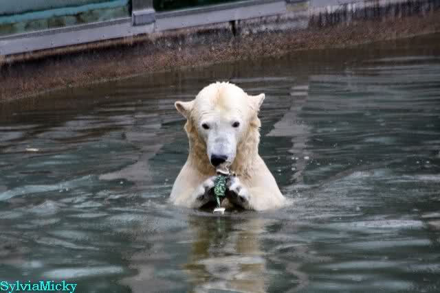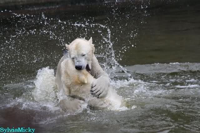 Wenn man bedenkt was sie mal für ein unschönes Leben im Zirkus hatte, freue ich mich wirklich, dass sie jetzt doch anscheinend eine super glückliche Eisbärin geworden ist.