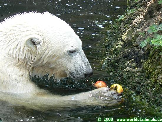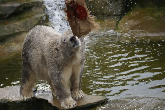 Knut ist ein übermütiger, wacher, neugieriger Bär der mit Allem spielt was er findet. Bälle, Äste, Baumstämme, egal. Es ist immer schön ihm dabei zuzusehen.
