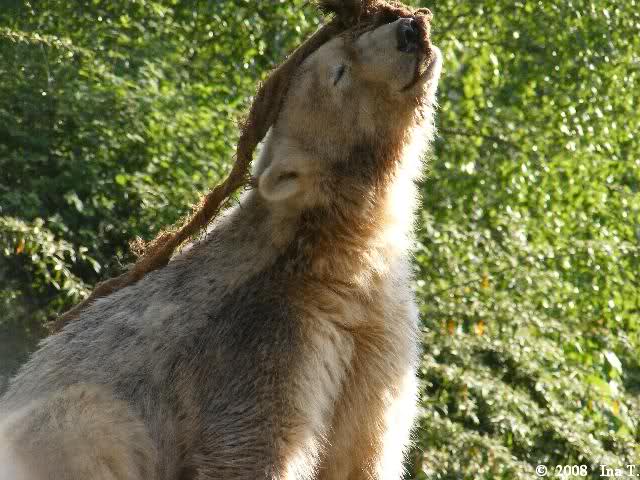Dann gingen wir zu den Bisons und den Wisenten. Die beiden Wisent-Jungen sind schon gehörig gewachsen. Wir haben darüber wirklich gestaunt. Ebenfalls gestaunt habe ich über das mächtige Geweih des Rentier-Mannes. So riesig und so schön!