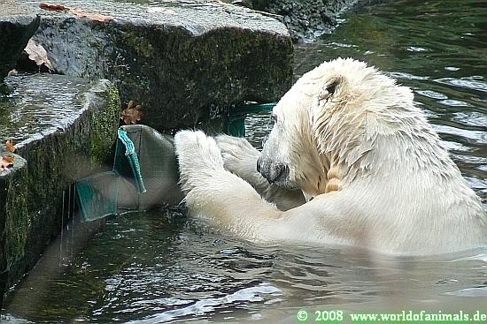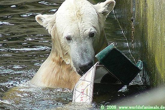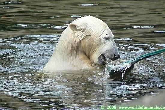 Good evening to you all Knut friends around the world. At the end of the day a little dose of Knut. A picture serie with Knut and his *Crazy Aussie Chicken*, his special zoo animals toy from Australia. Enjoy our polar baer youngster.