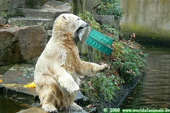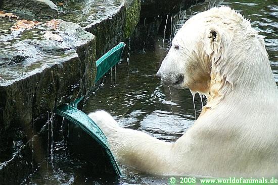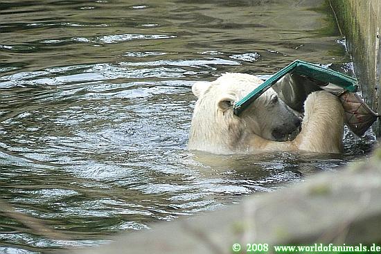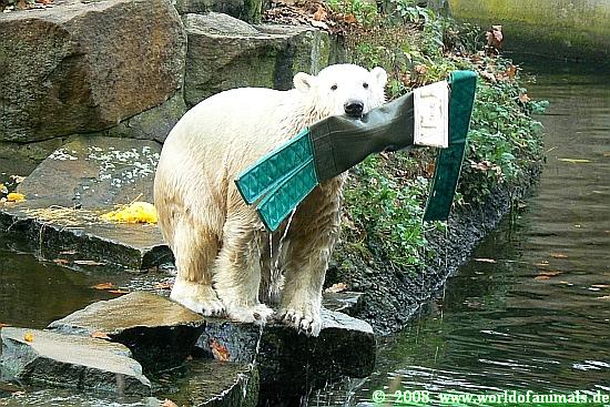 Zum Ende des Tages nun eine weitere Bilderserie von Knut und seinem *Verrückten Aussie Huhn*, seinem speziellen Spielzeug für Zootiere. Viel Spaß.