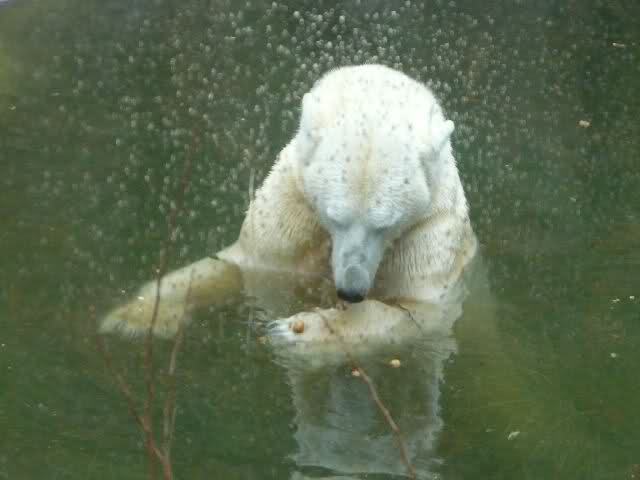 Heute waren die Eisbären auf Knuts kleiner Anlage. Ihre große Anlage wurde gesäubert.
